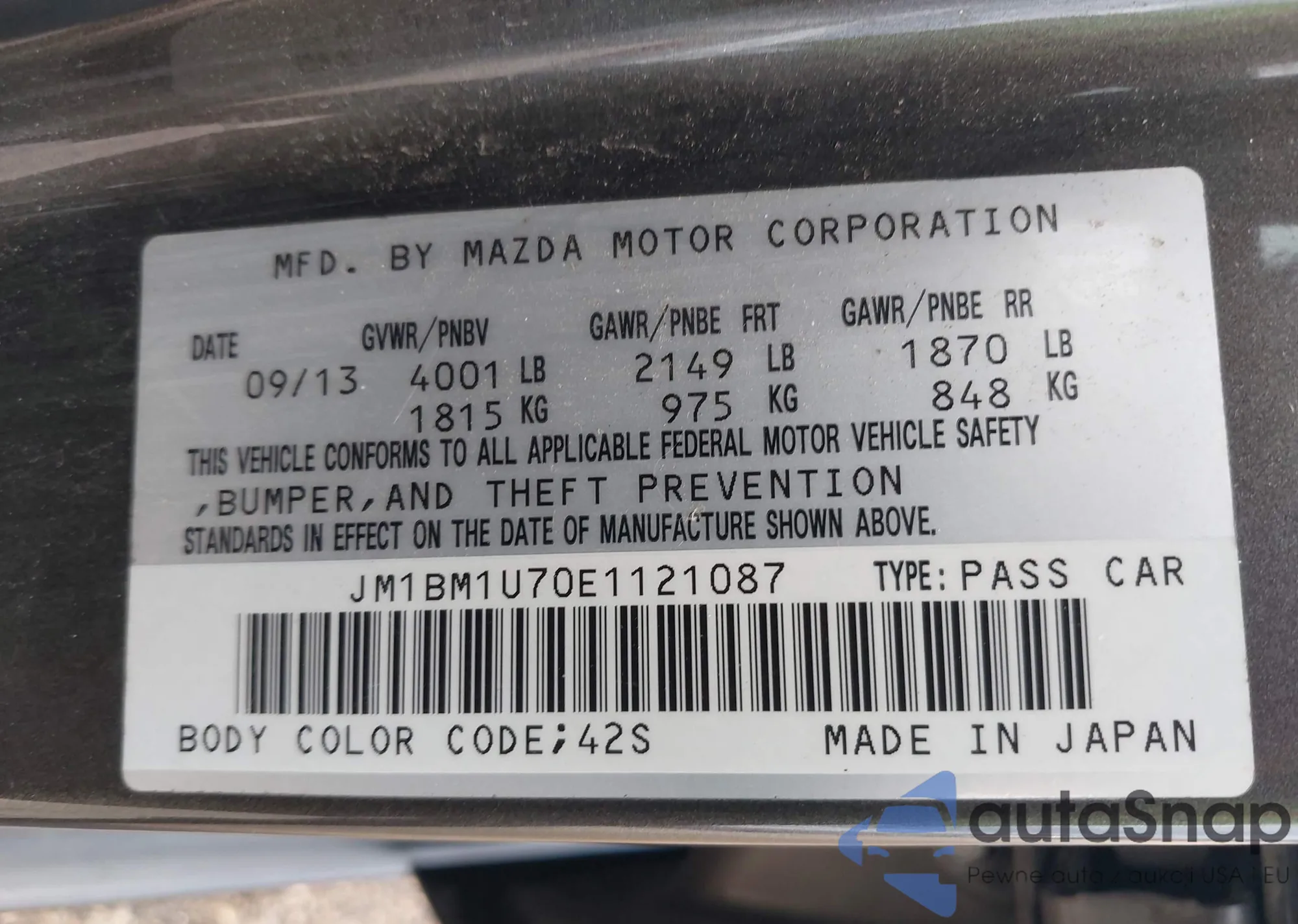 LOT: 44351182 VIN: 4S4BRBKC9D3321651