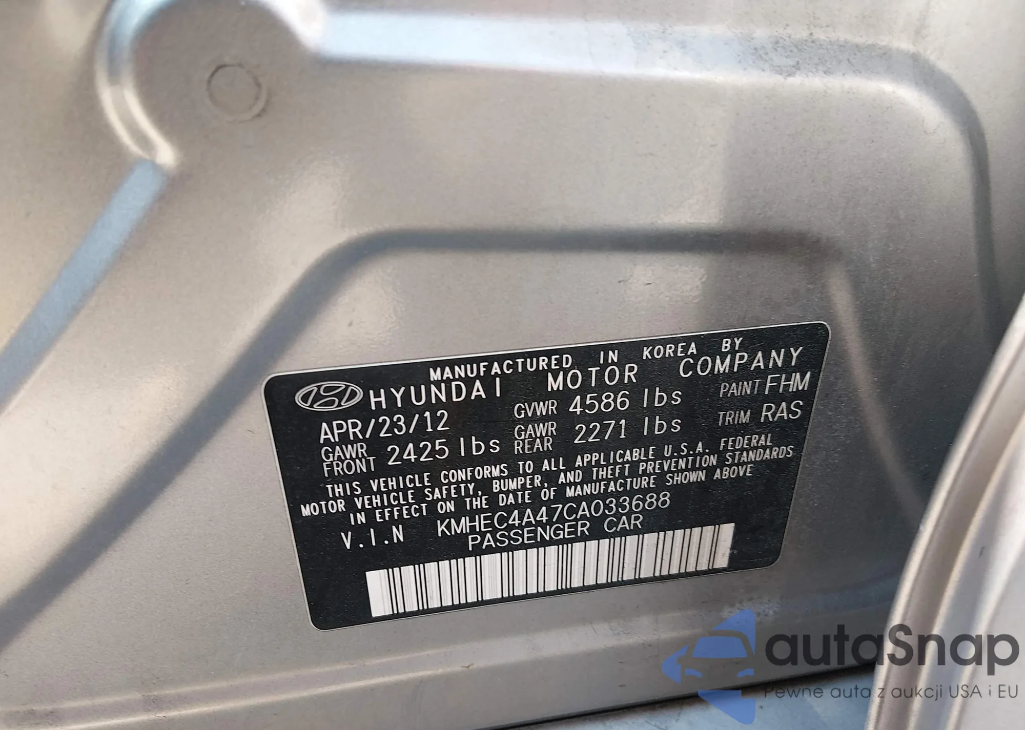 LOT: 44466266 VIN: KMHEC4A47CA033688