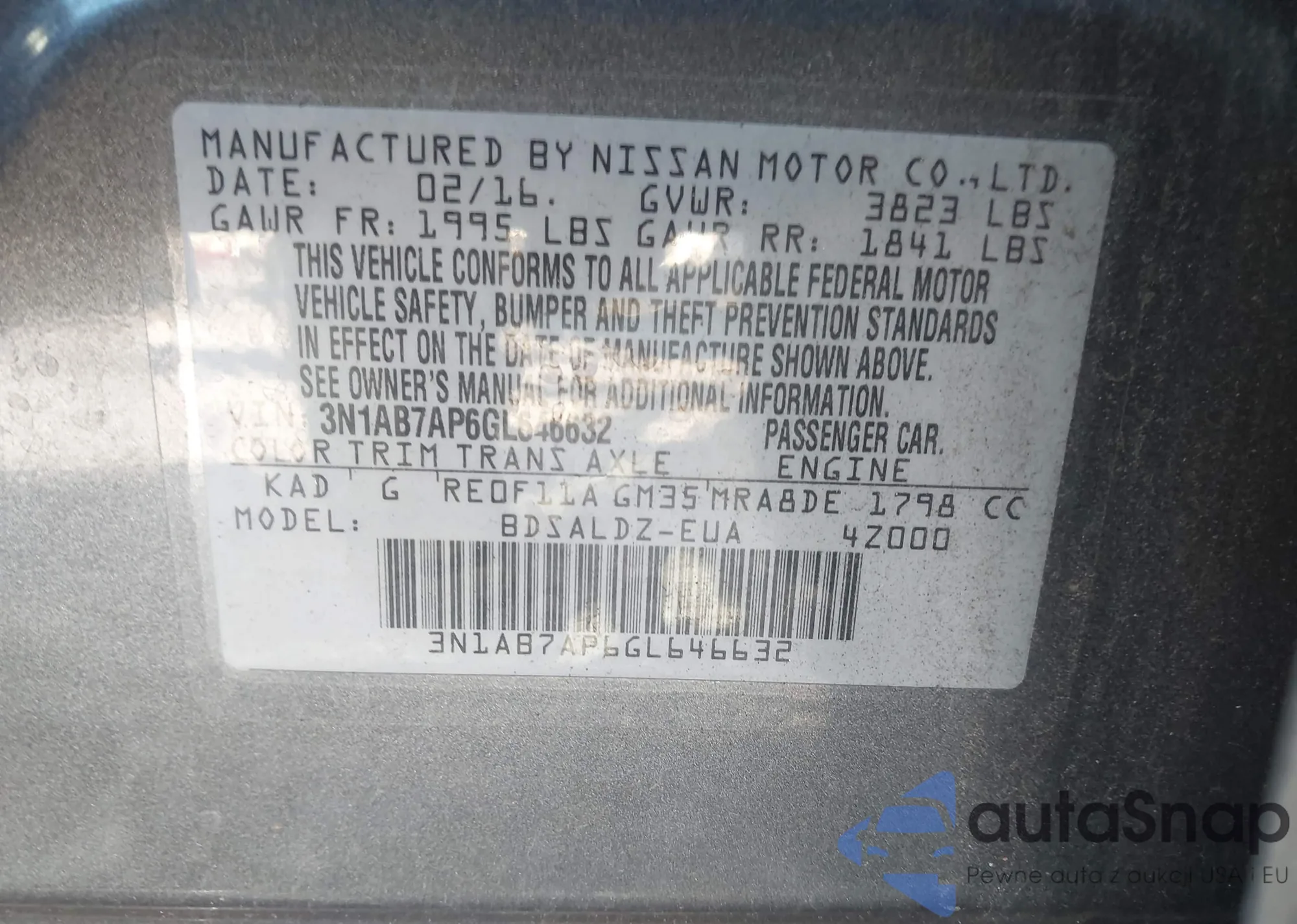 • VIN 3N1AB7AP6GL646632