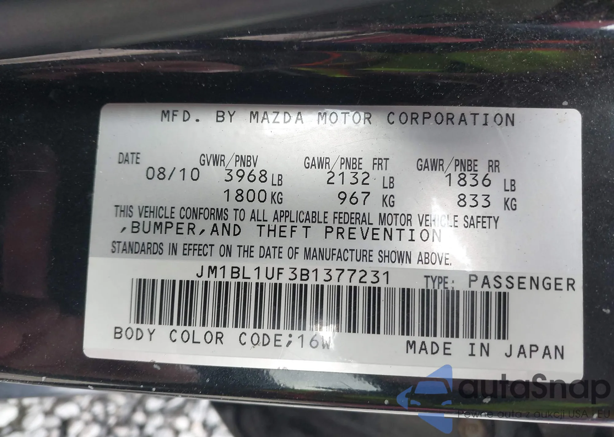 LOT: 44266443 VIN: JM1BL1UF3B1377231