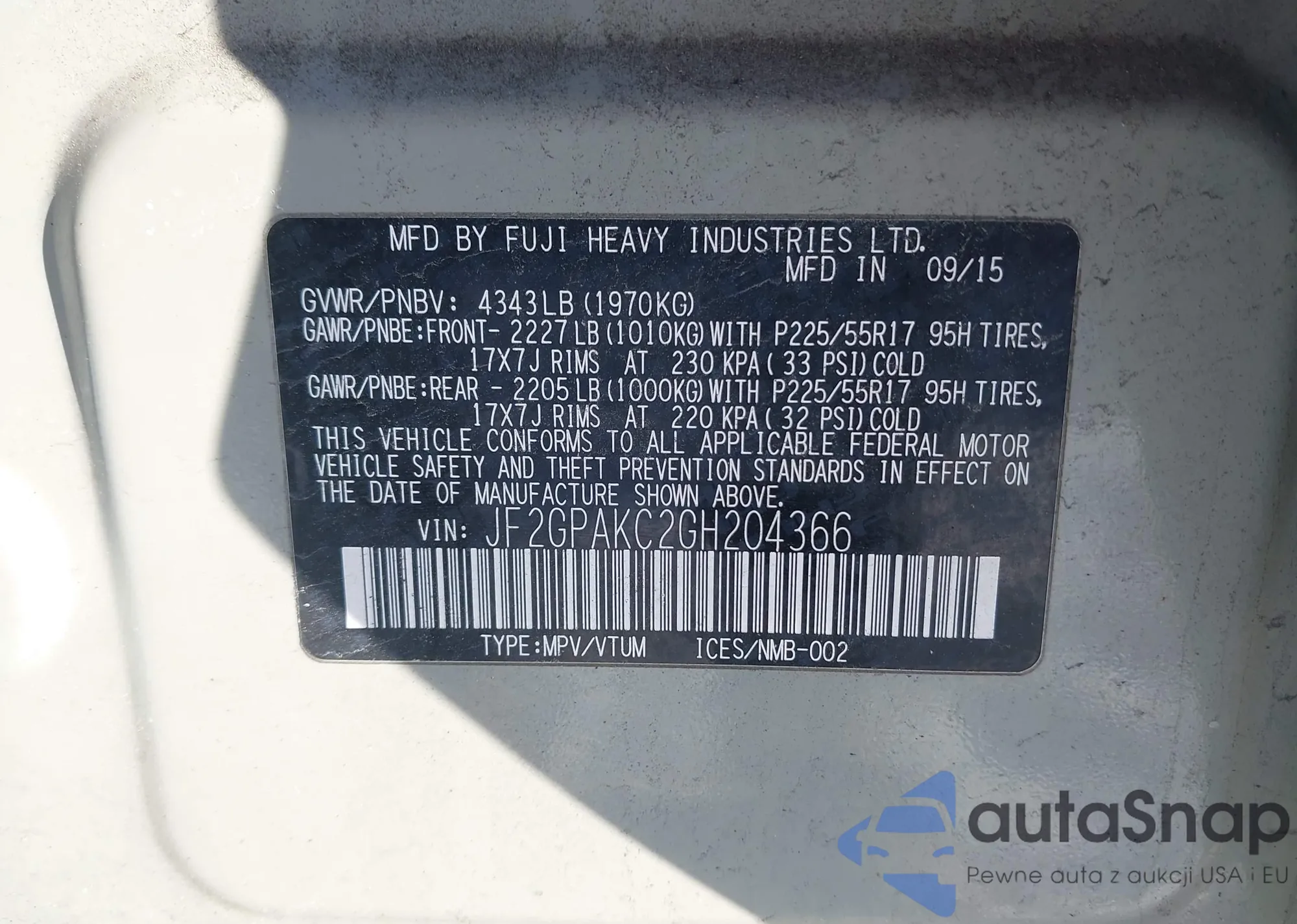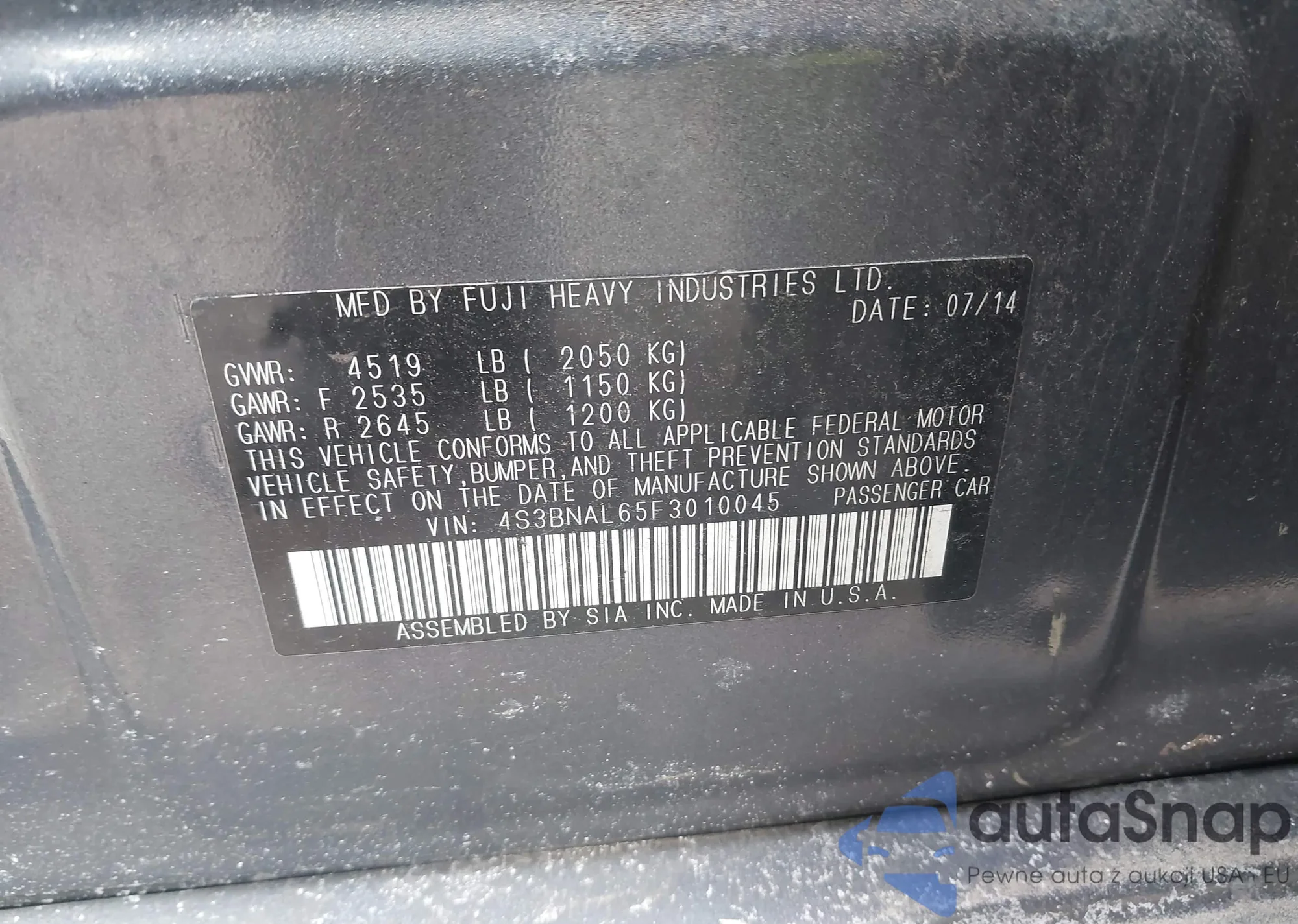 • VIN 4S3BMBC64D3005926