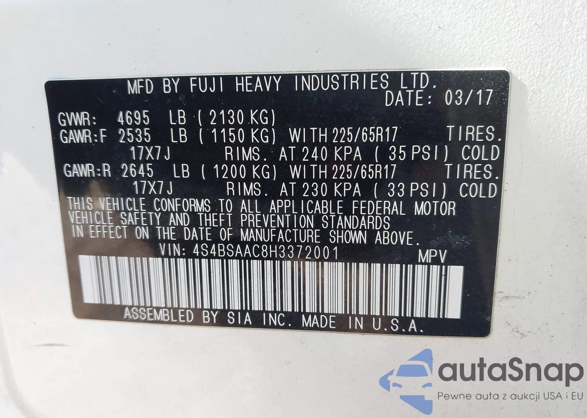 • VIN 4S4BSAAC8H3372001