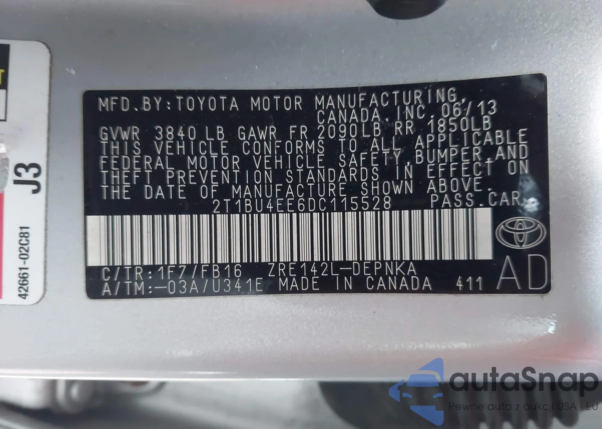 • VIN 2T1BU4EE6DC115528