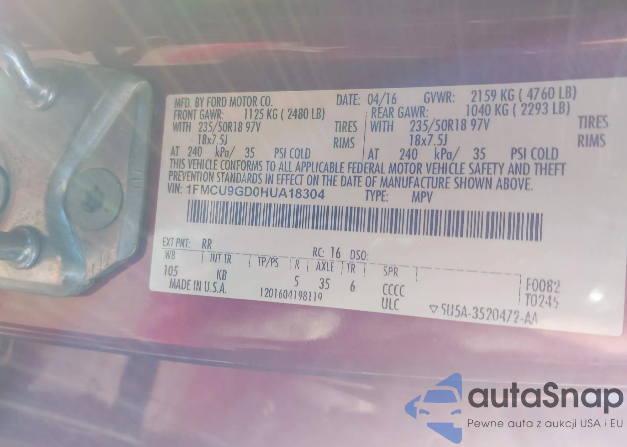 • VIN 1FMCU9GD0HUA18304