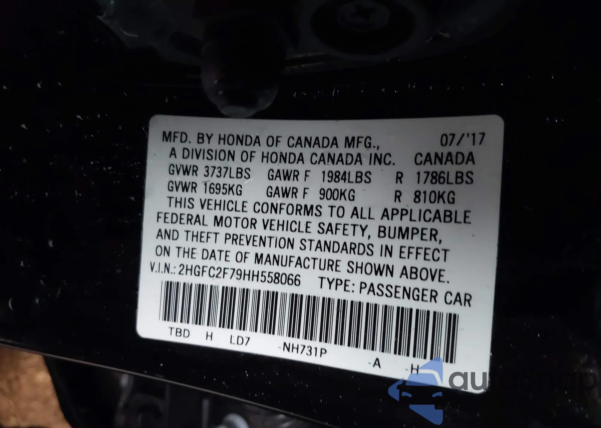 LOT: 44414503 VIN: 2HGFC2F79HH558066