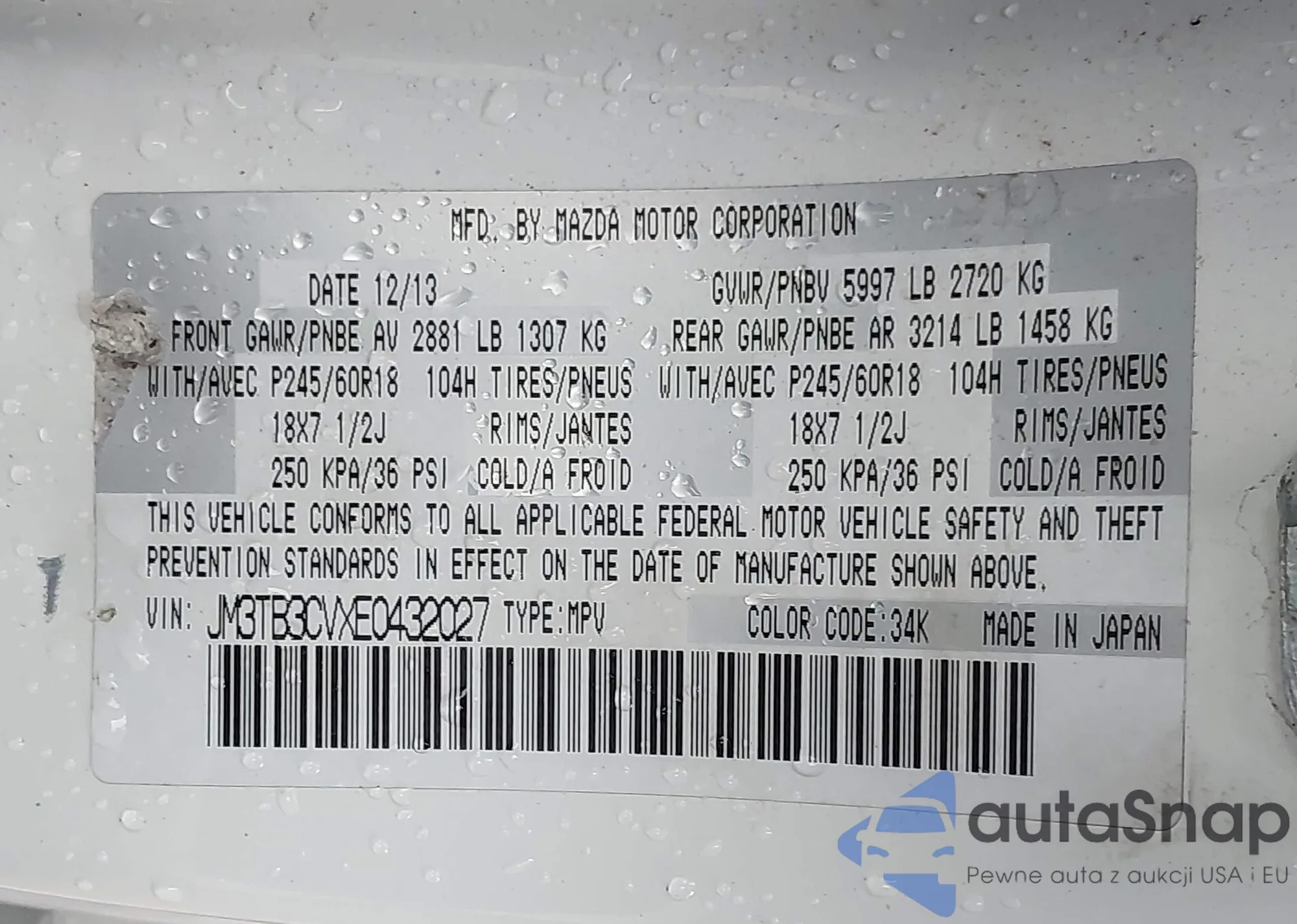 • VIN JM3TB3CVXE0432027