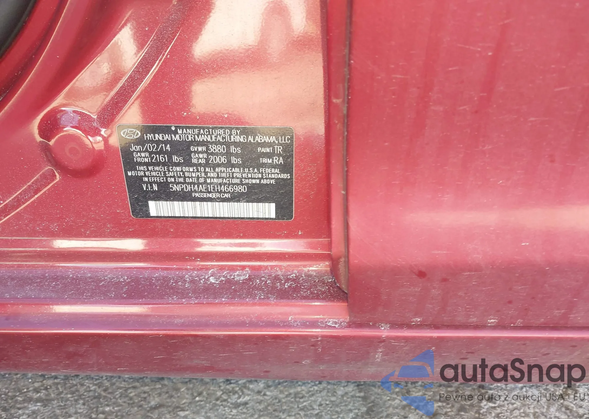 LOT: 44272100 VIN: 5NPDH4AE1EH466980