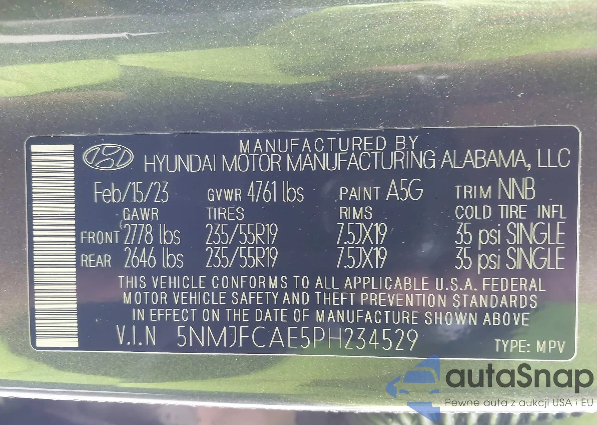 • VIN 5NMJFCAE5PH234529