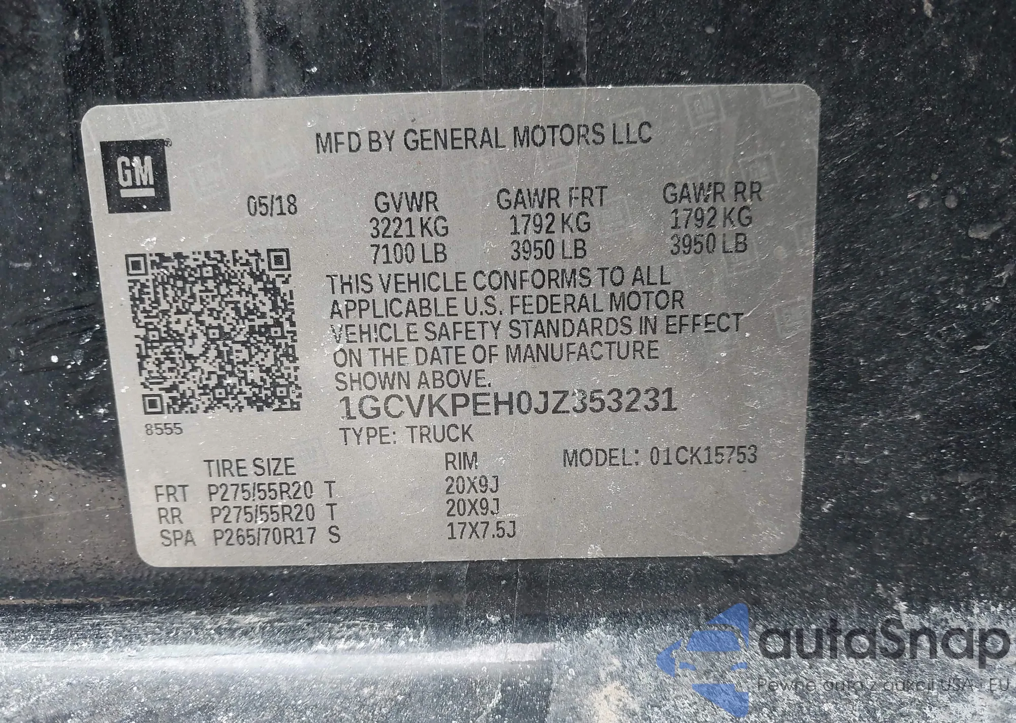 • VIN 1GCVKPEH0JZ353231