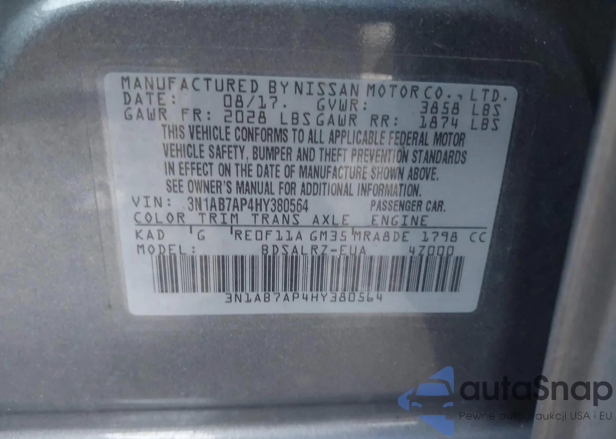 LOT: 43466344 VIN: 5TENX22N17Z368591