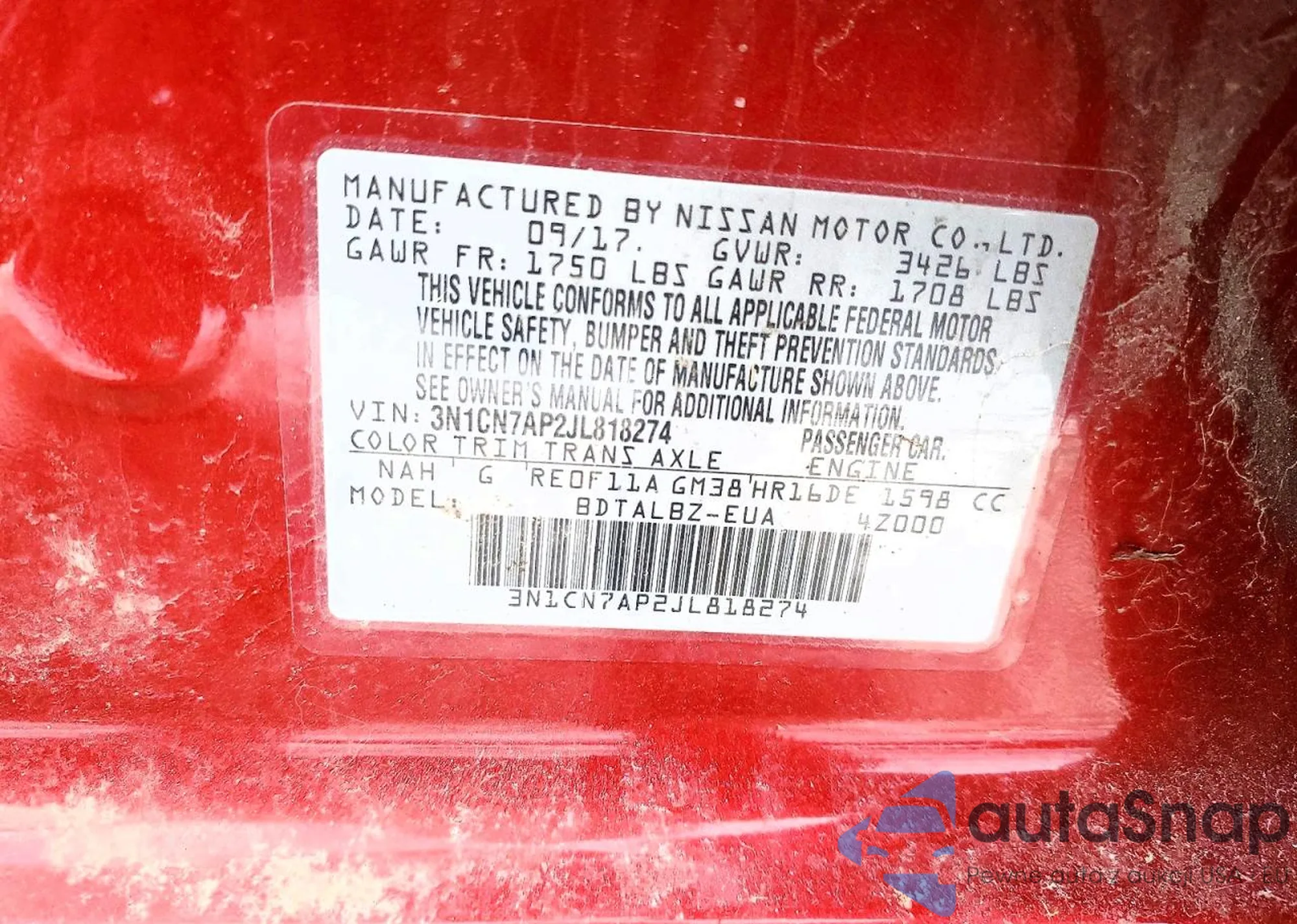 • VIN 3N1CN7AP2JL818274
