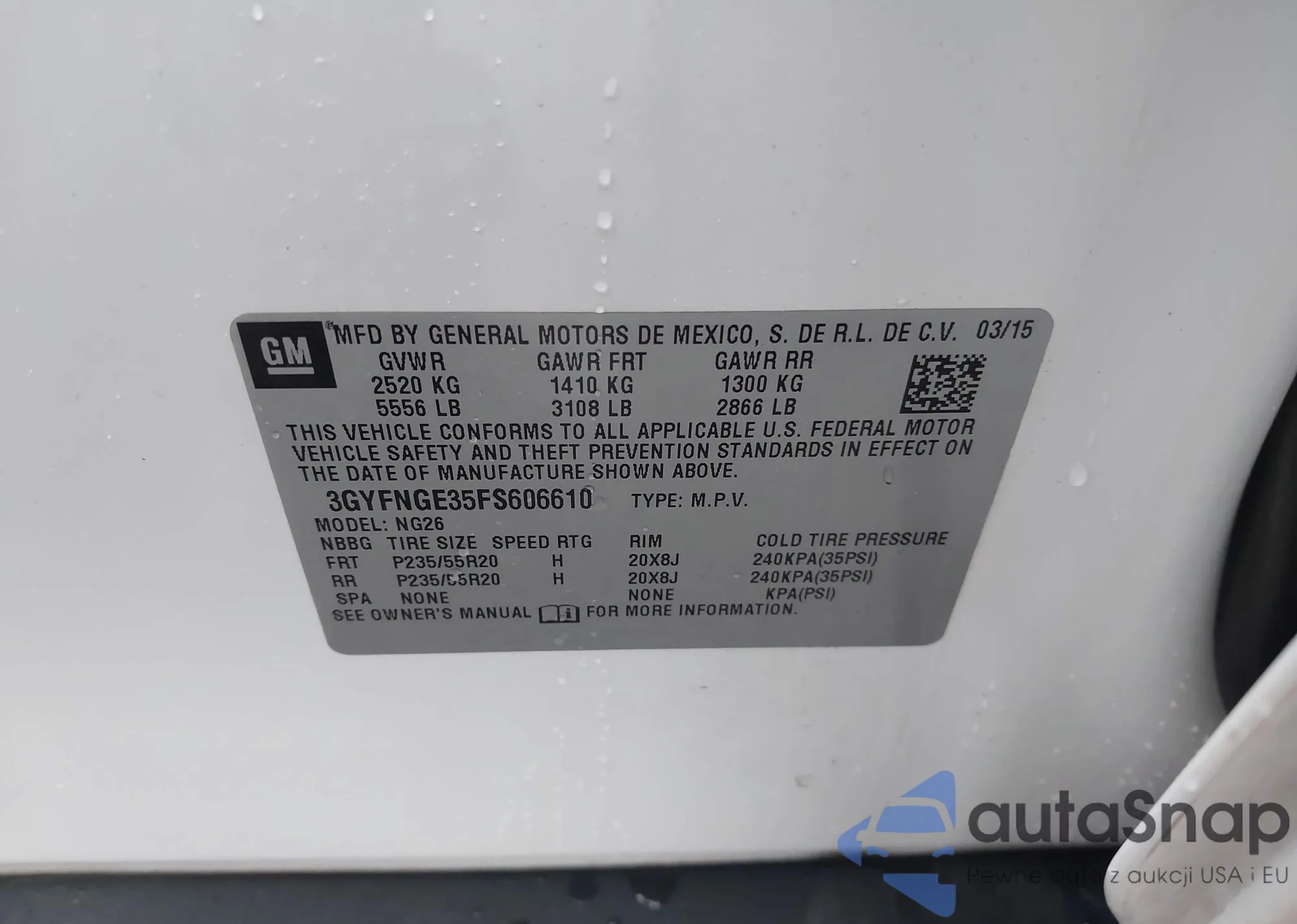 LOT: 44521272 VIN: 3GYFNGE35FS606610