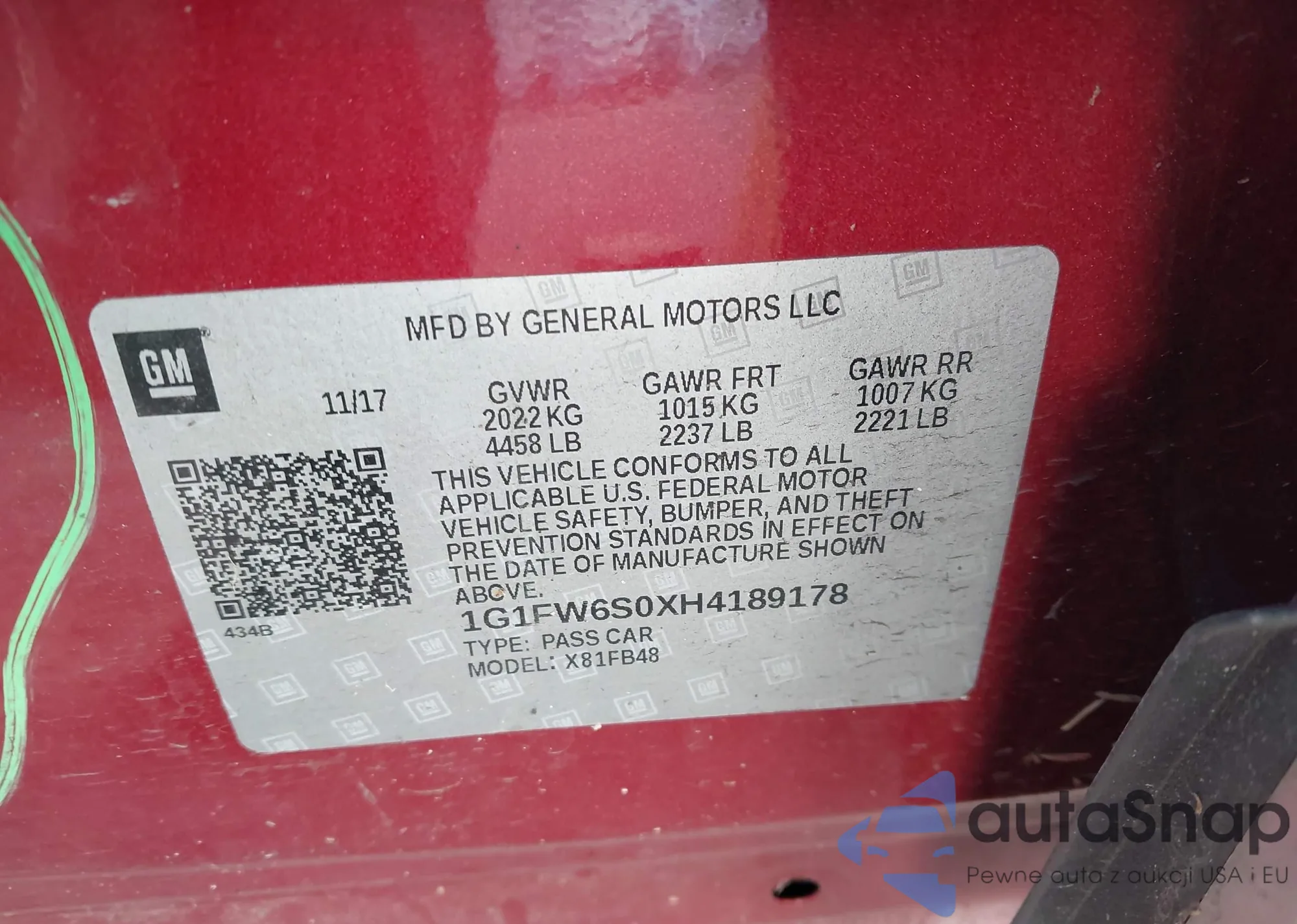 • VIN 1G1FW6S0XH4189178