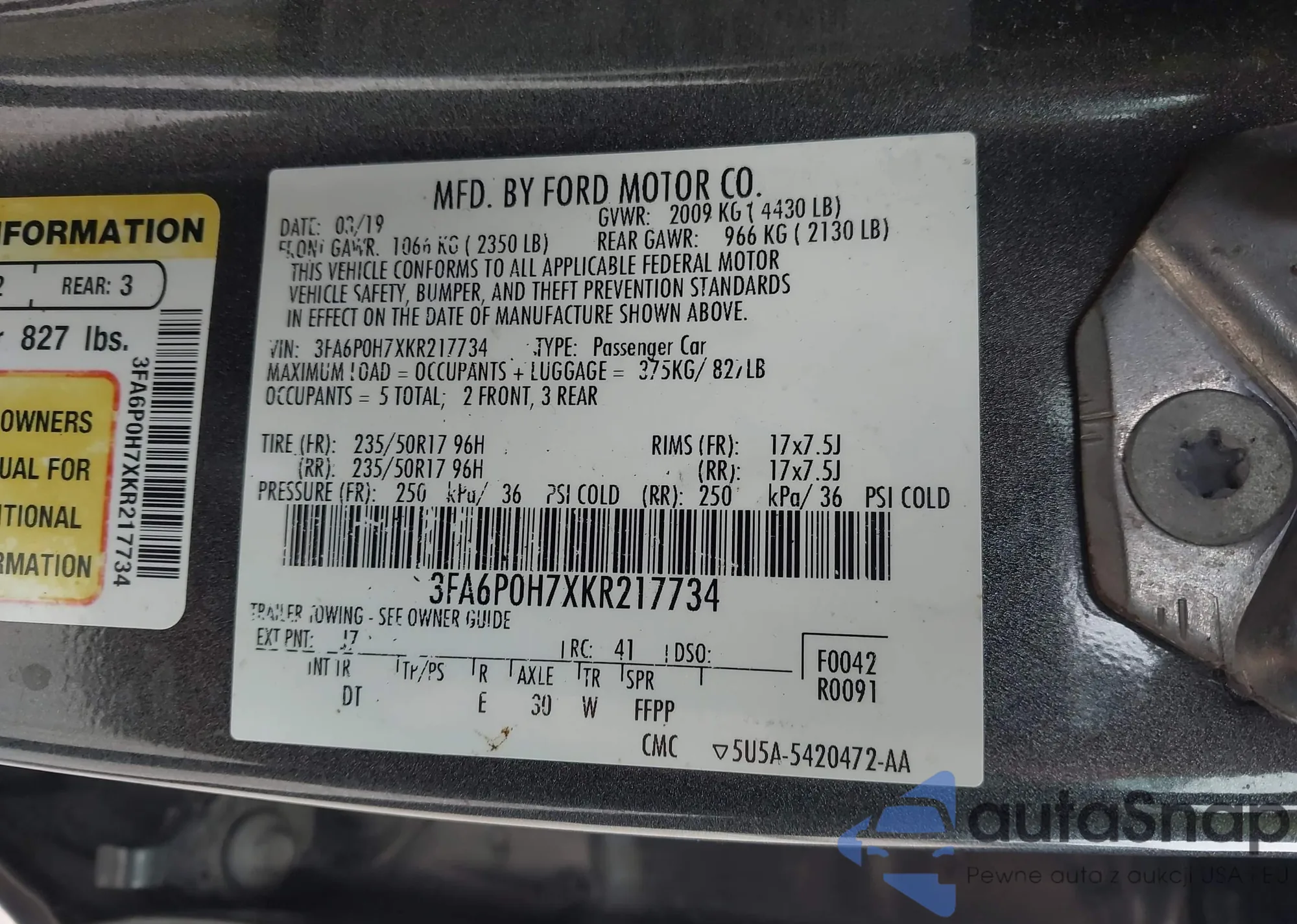 • VIN 3FA6P0H7XKR217734