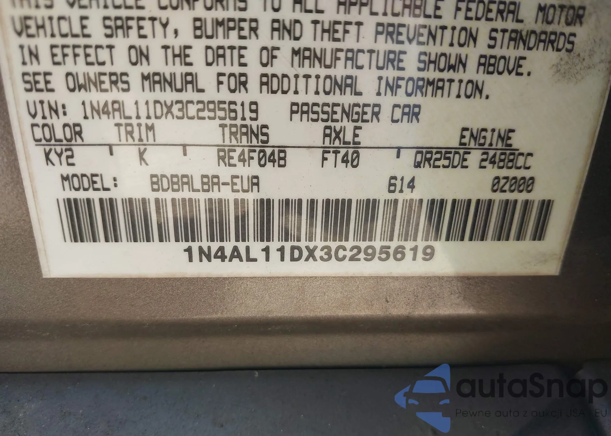 LOT: 44401153 VIN: 4T1BF3EK7BU175355