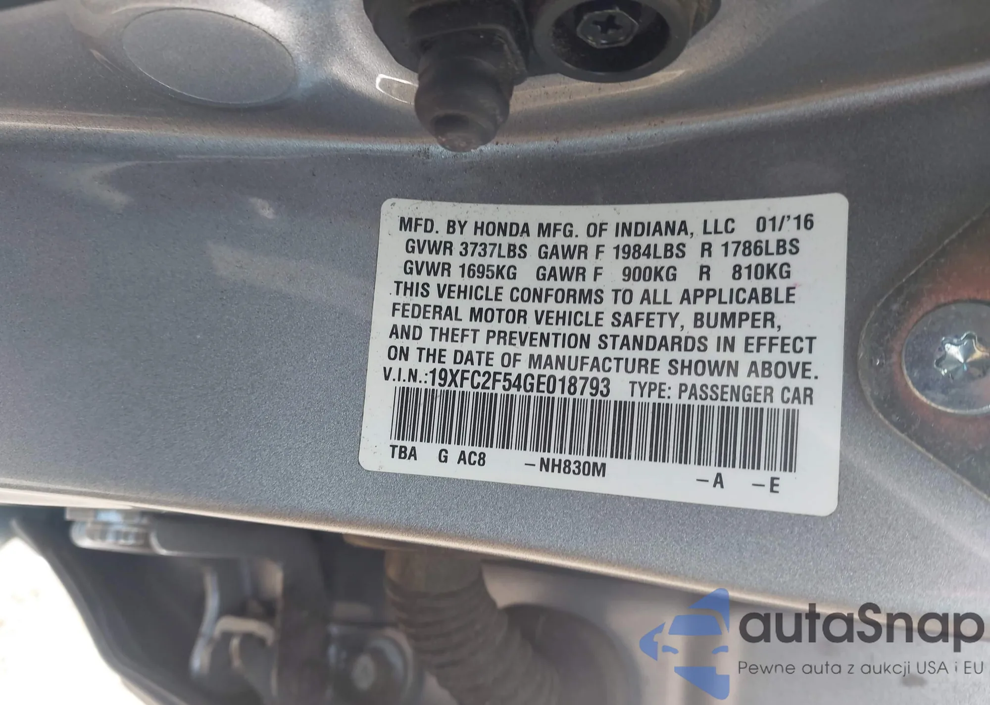 • VIN 19XFC2F54GE018793