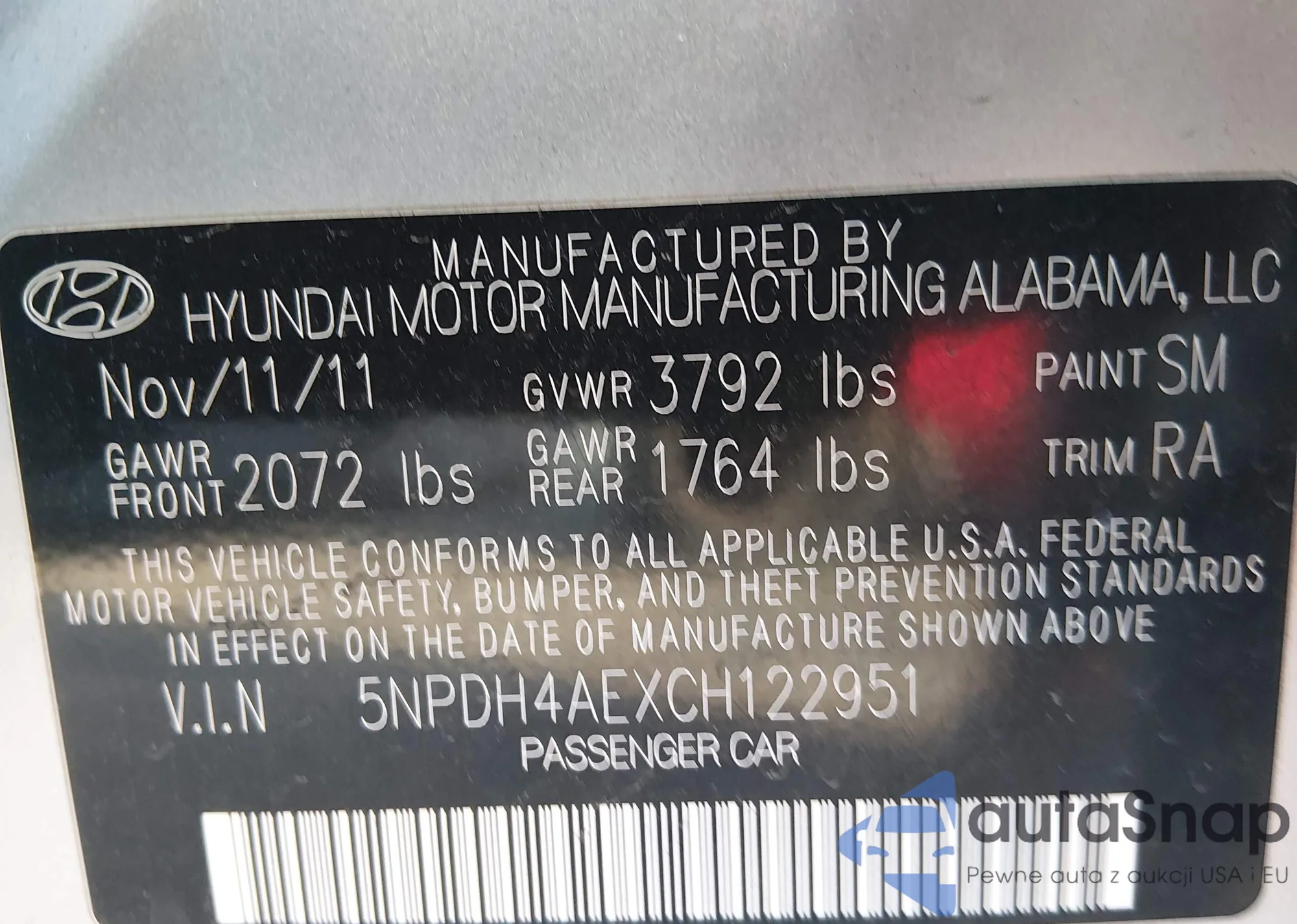 LOT: 44386320 VIN: KMHDU4AD1AU202558