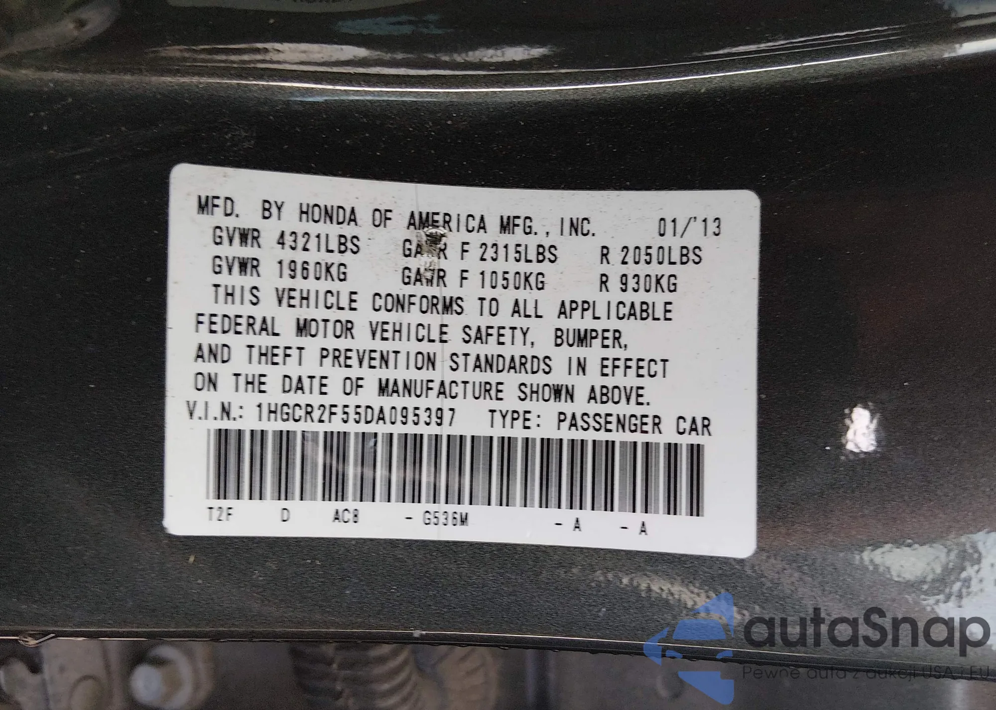 • VIN 1HGCR2F55DA095397