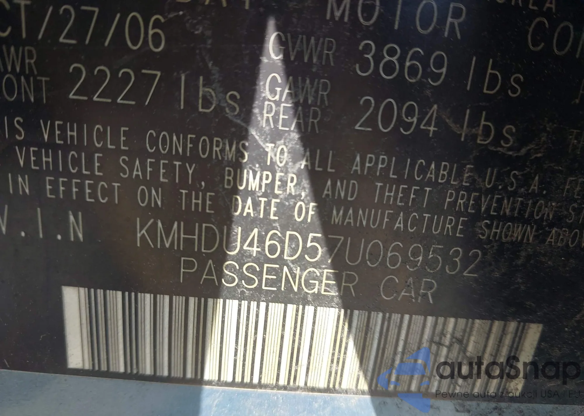 LOT: 44368318 VIN: KM8NU4CC6AU103727