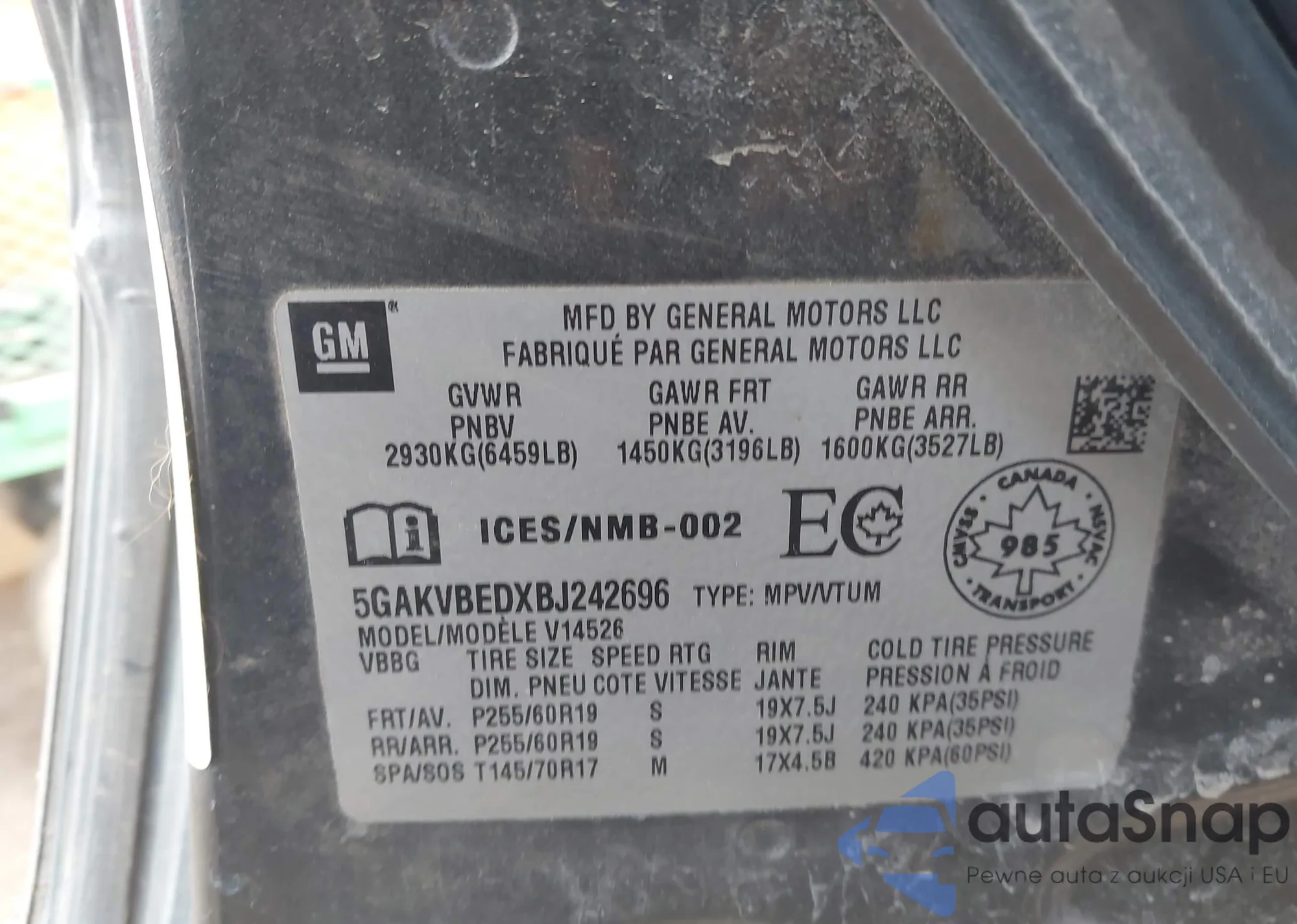 • VIN 5GAKVBEDXBJ242696