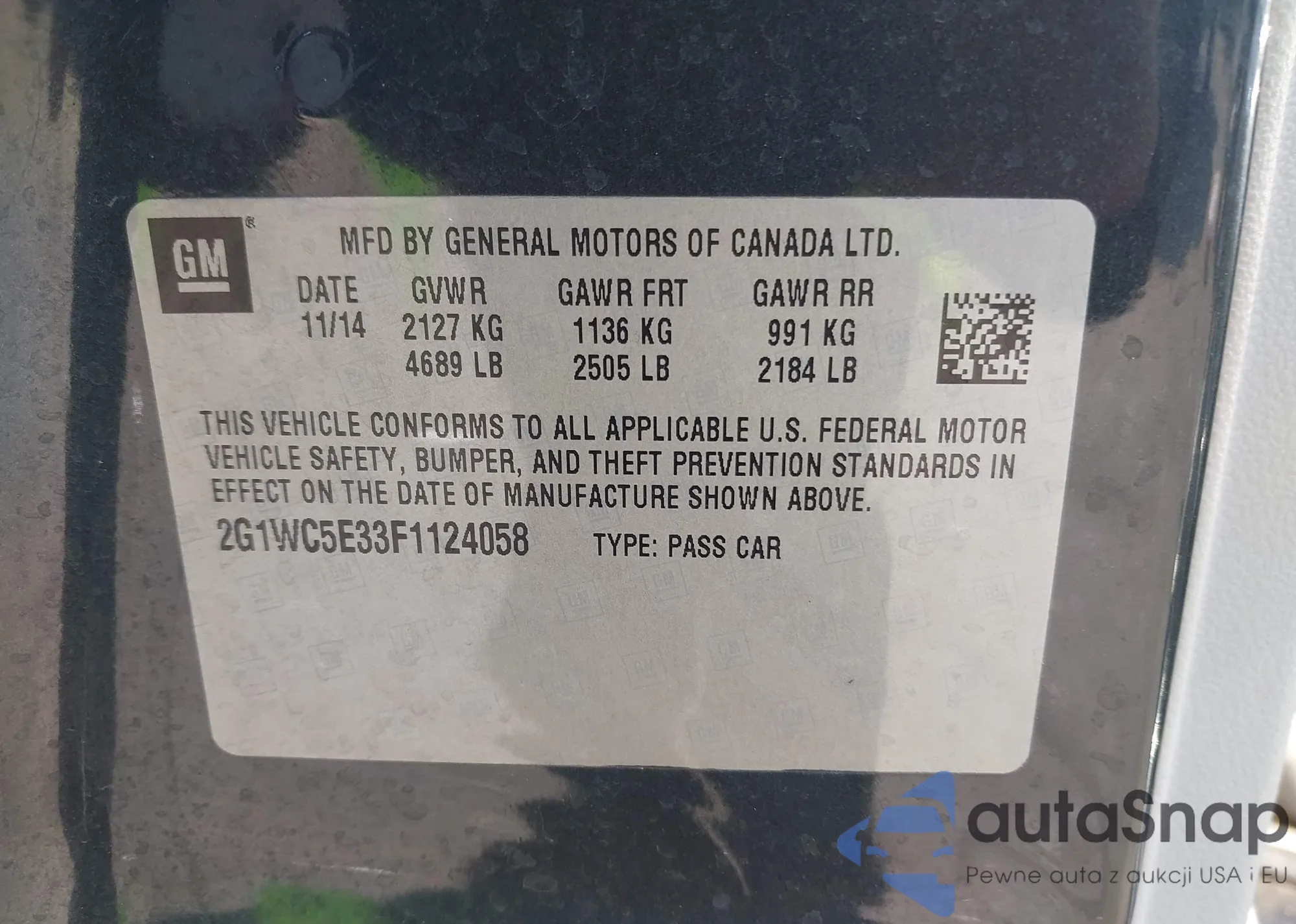 • VIN 2G1WB57N691111424