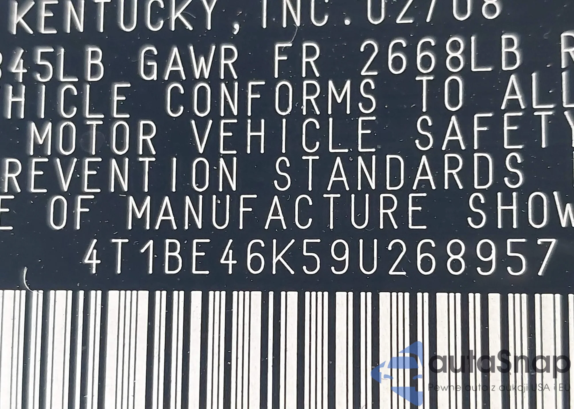 • VIN 4T1BE46K59U268957
