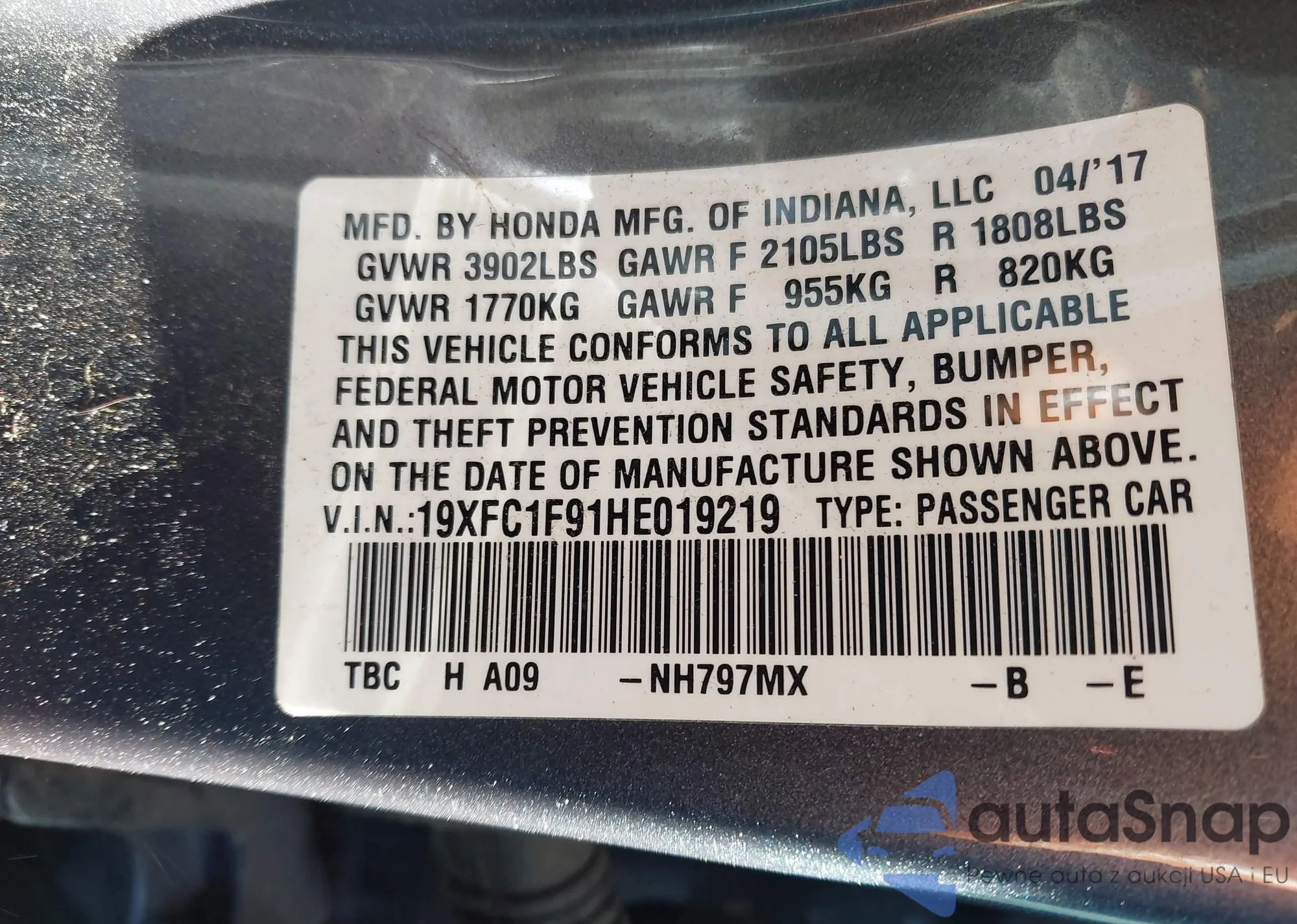 • VIN 19XFC1F91HE019219