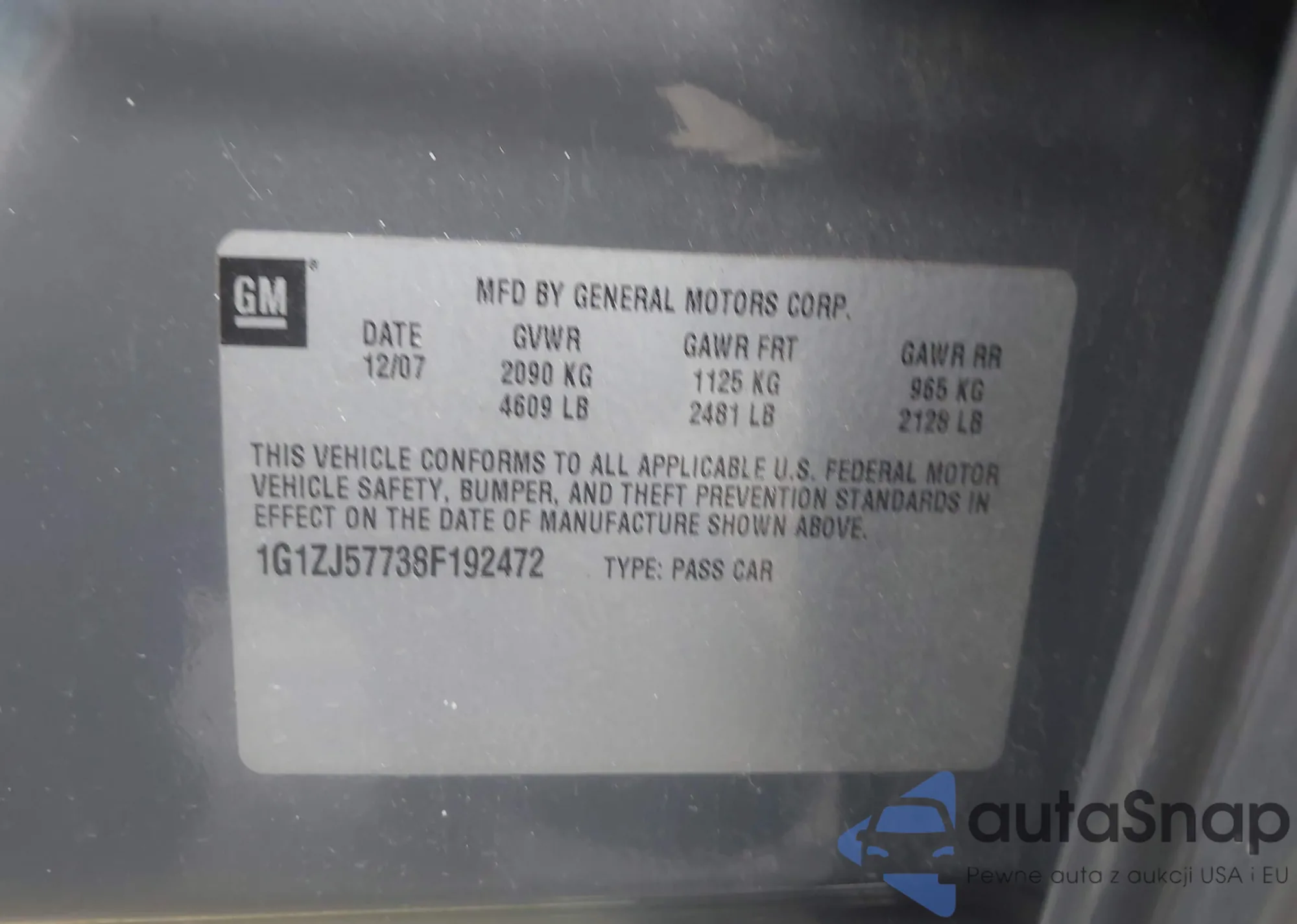 • VIN 1G1ZJ57738F192472