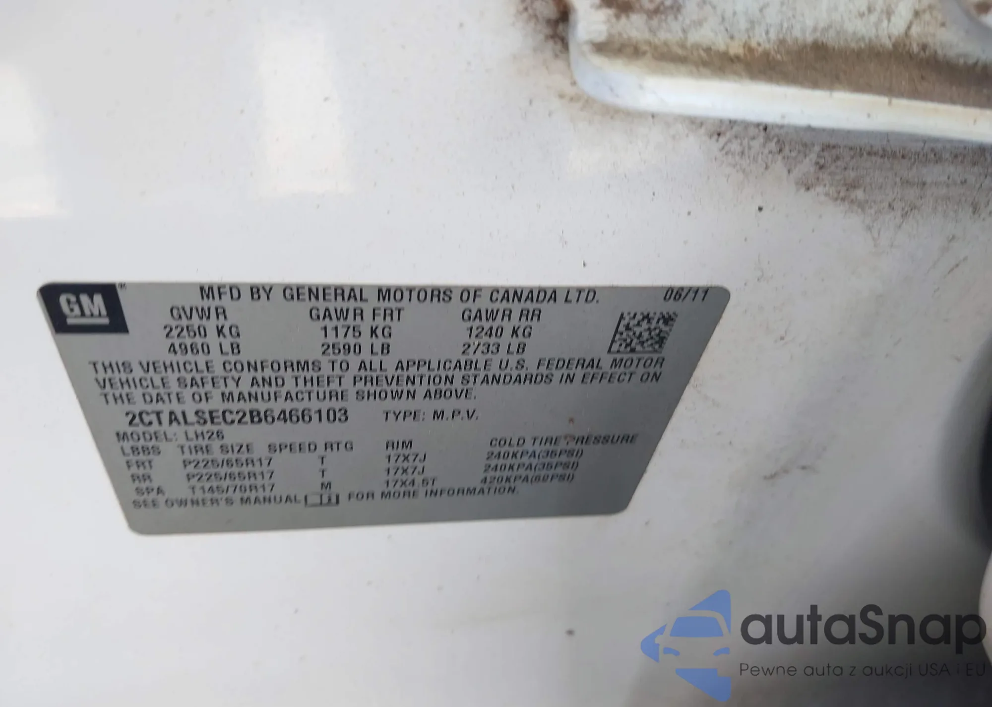 • VIN 2CTALSEC2B6466103