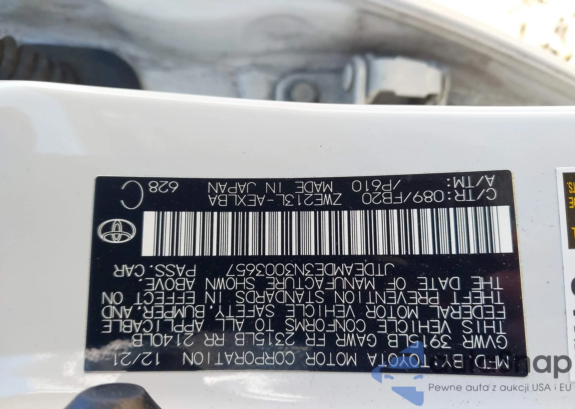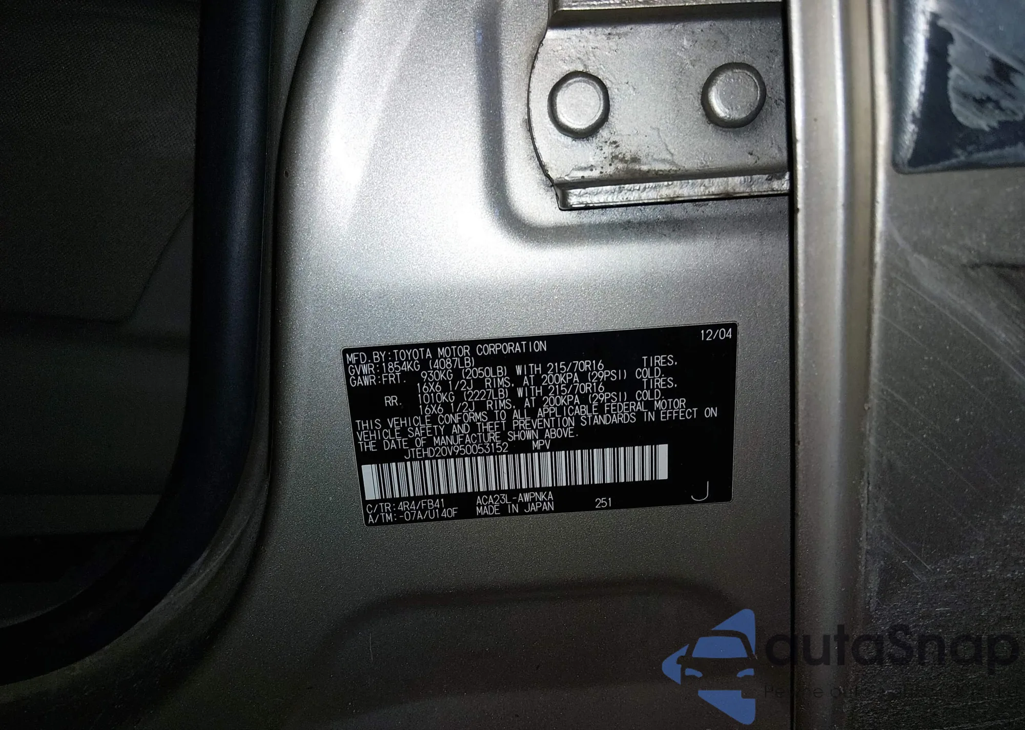 • VIN 1HGCP2F86AA182835