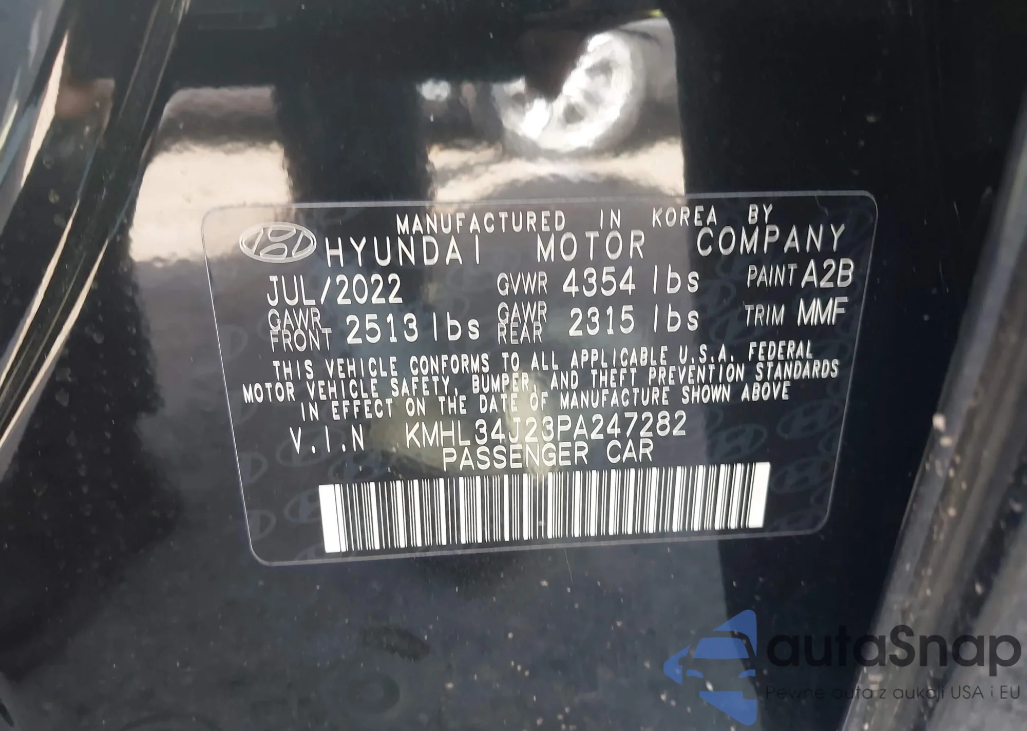 LOT: 44490390 VIN: KMHL34J23PA247282