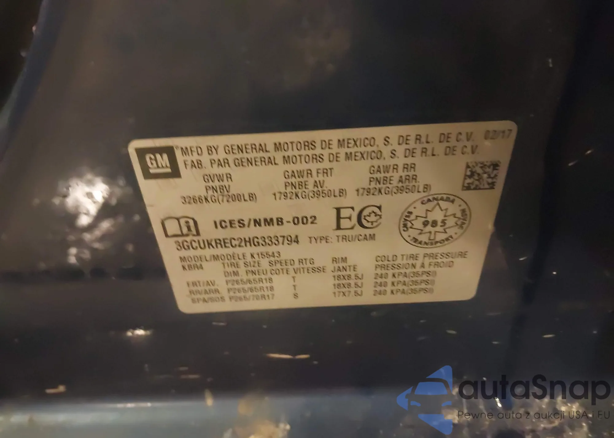 • VIN 3GCUKREC2HG333794