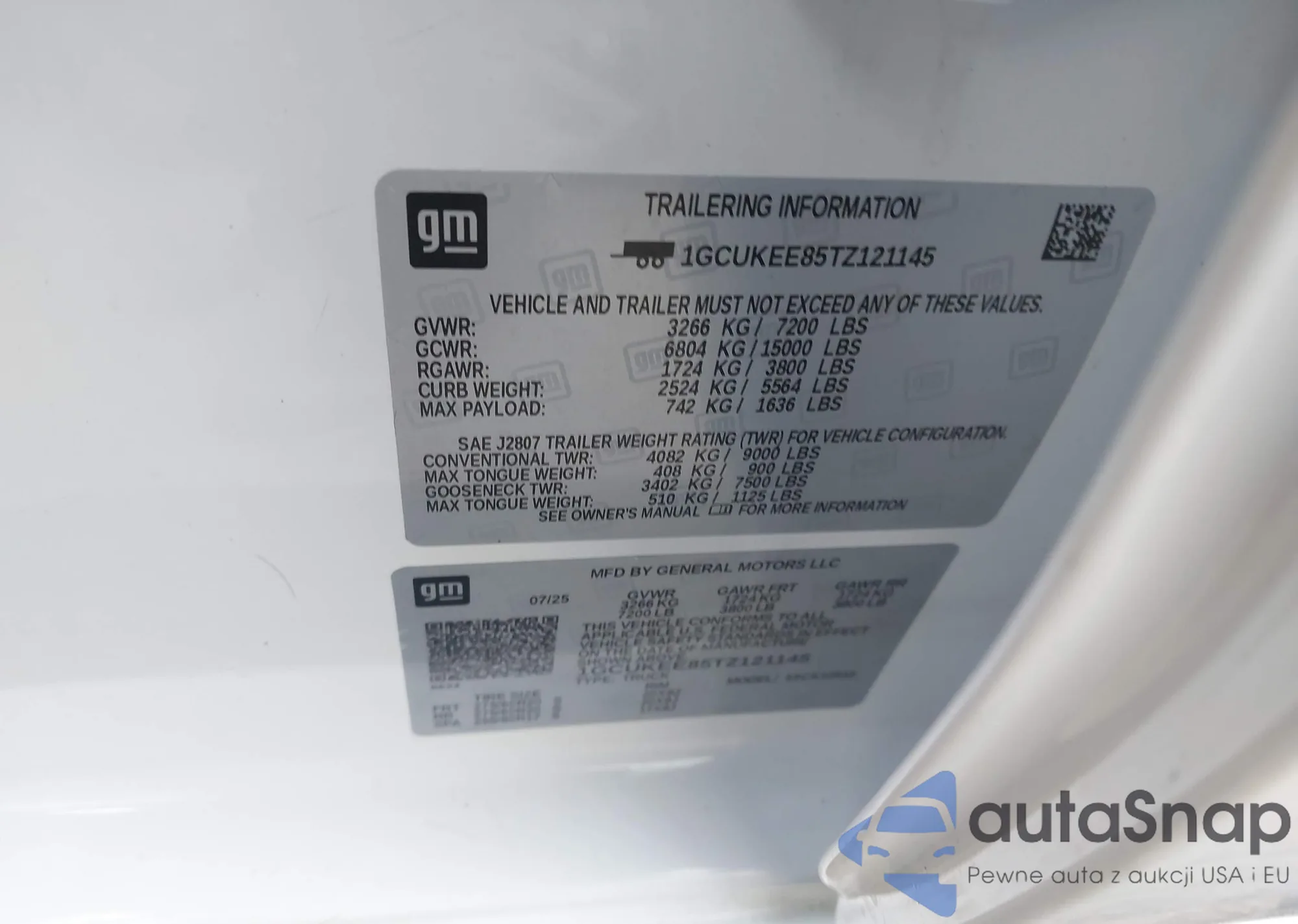 • VIN 1GCUKEE85TZ121145