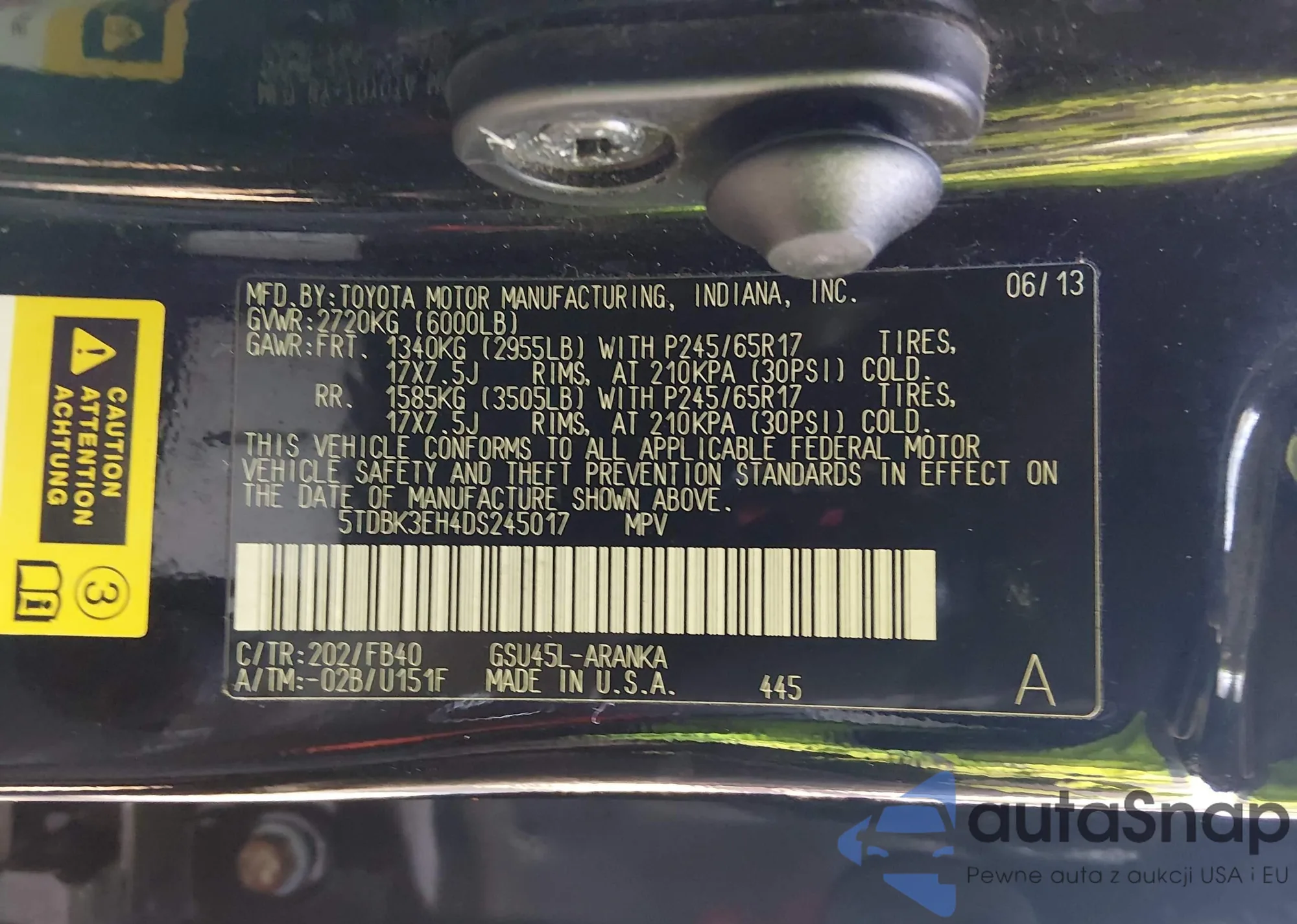• VIN 5TDBK3EH4DS245017