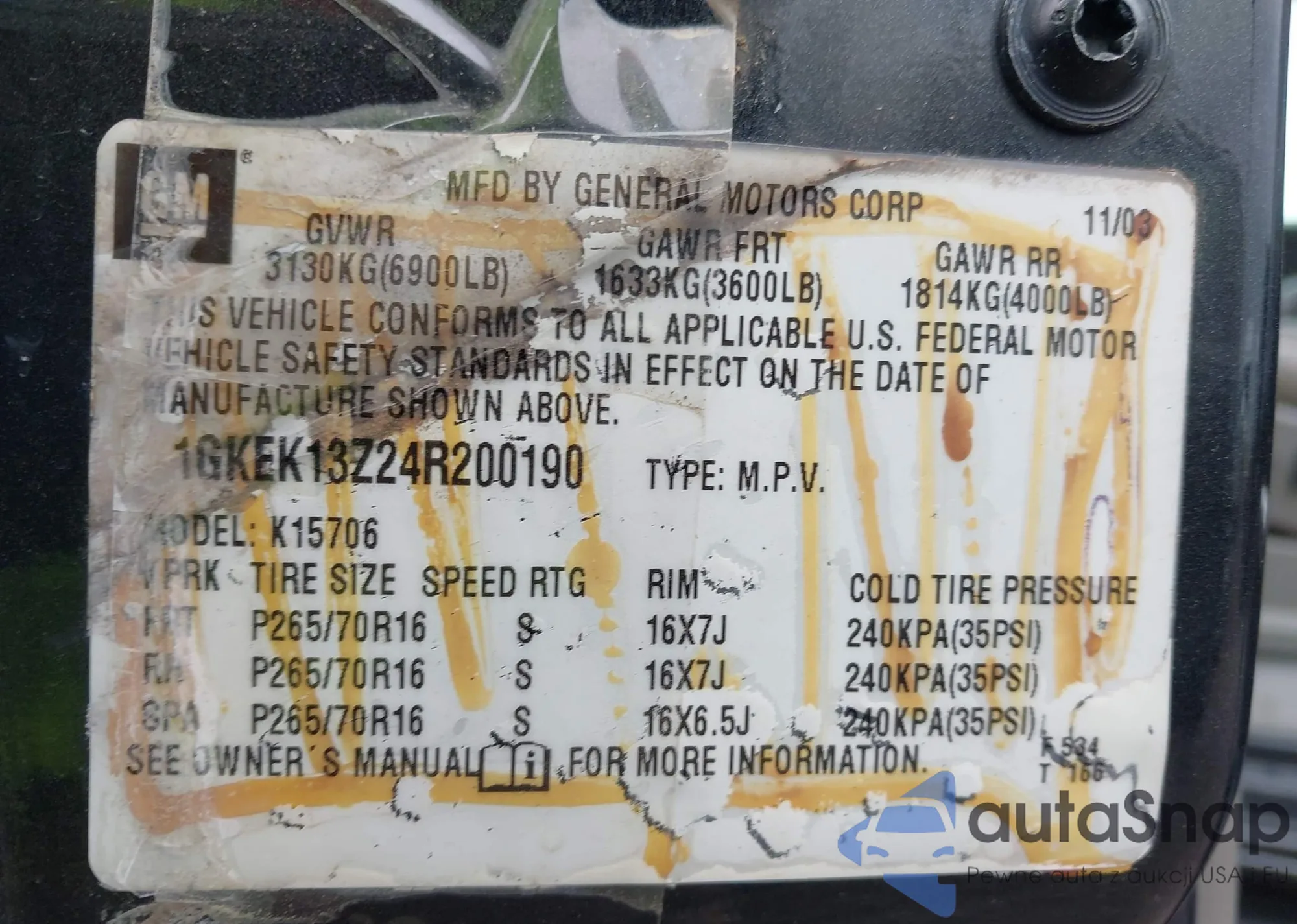 LOT: 44604295 VIN: 1GNSKLED8RR320473