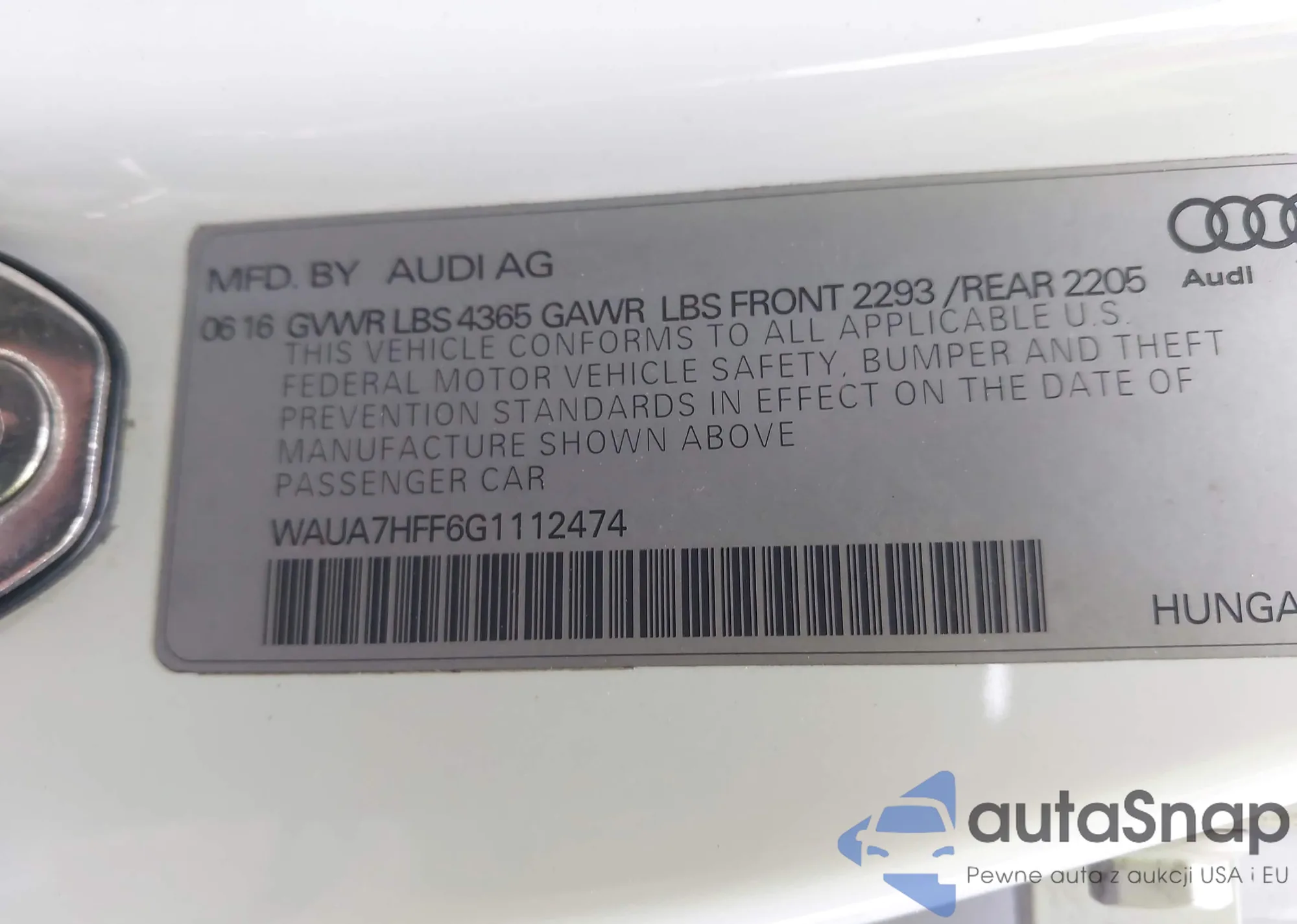 • VIN WAUA7HFF6G1112474