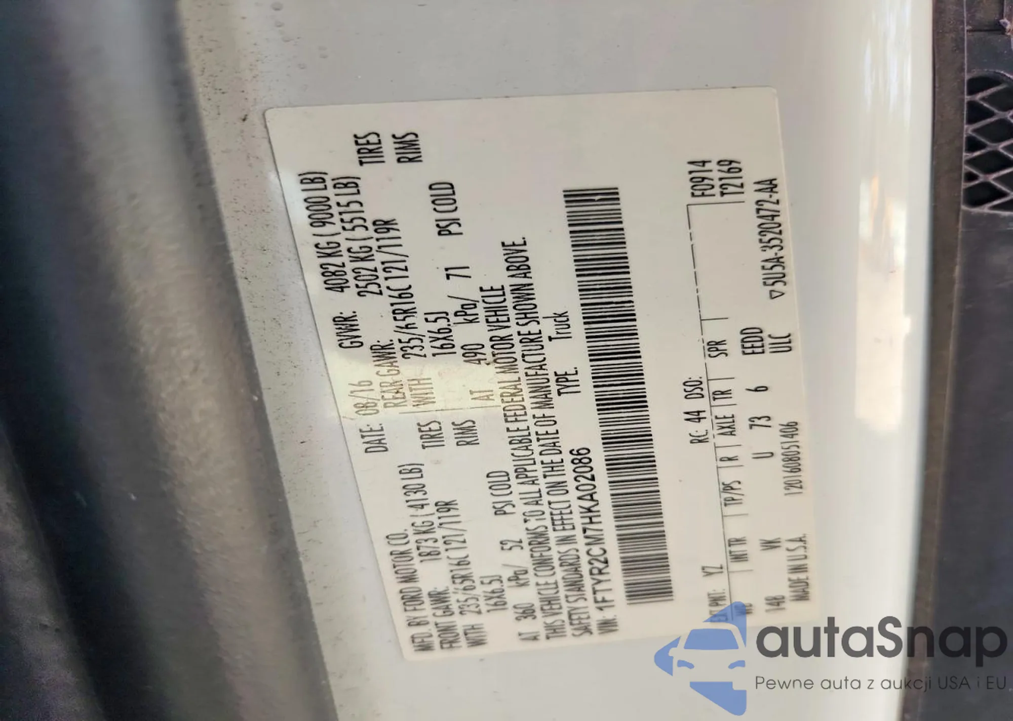 • VIN 1FTYR2CM7HKA02086