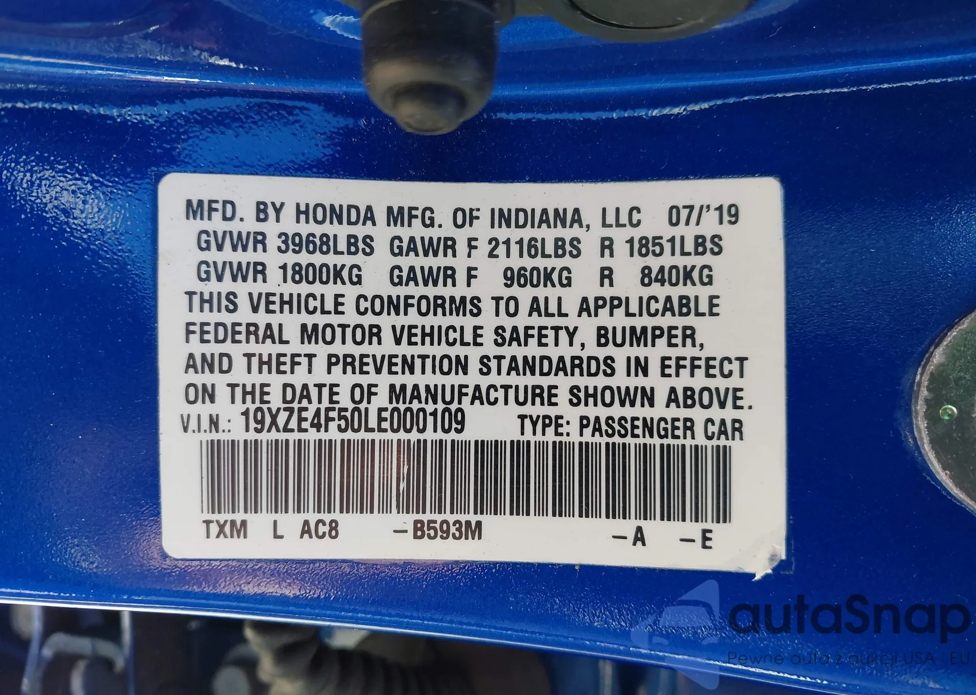 • VIN 4S4BTANC7N3192074
