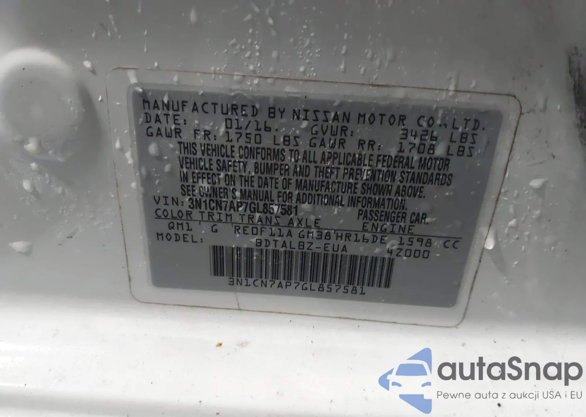 • VIN 3N1CN7AP7GL857581