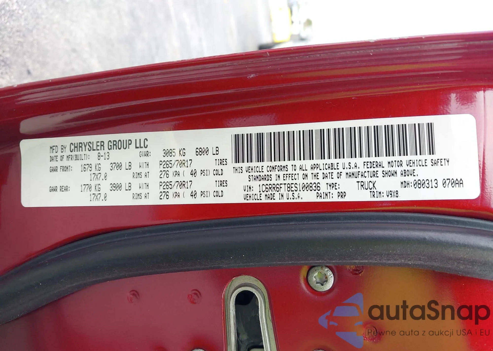• VIN 1C6RR6FT8ES100836