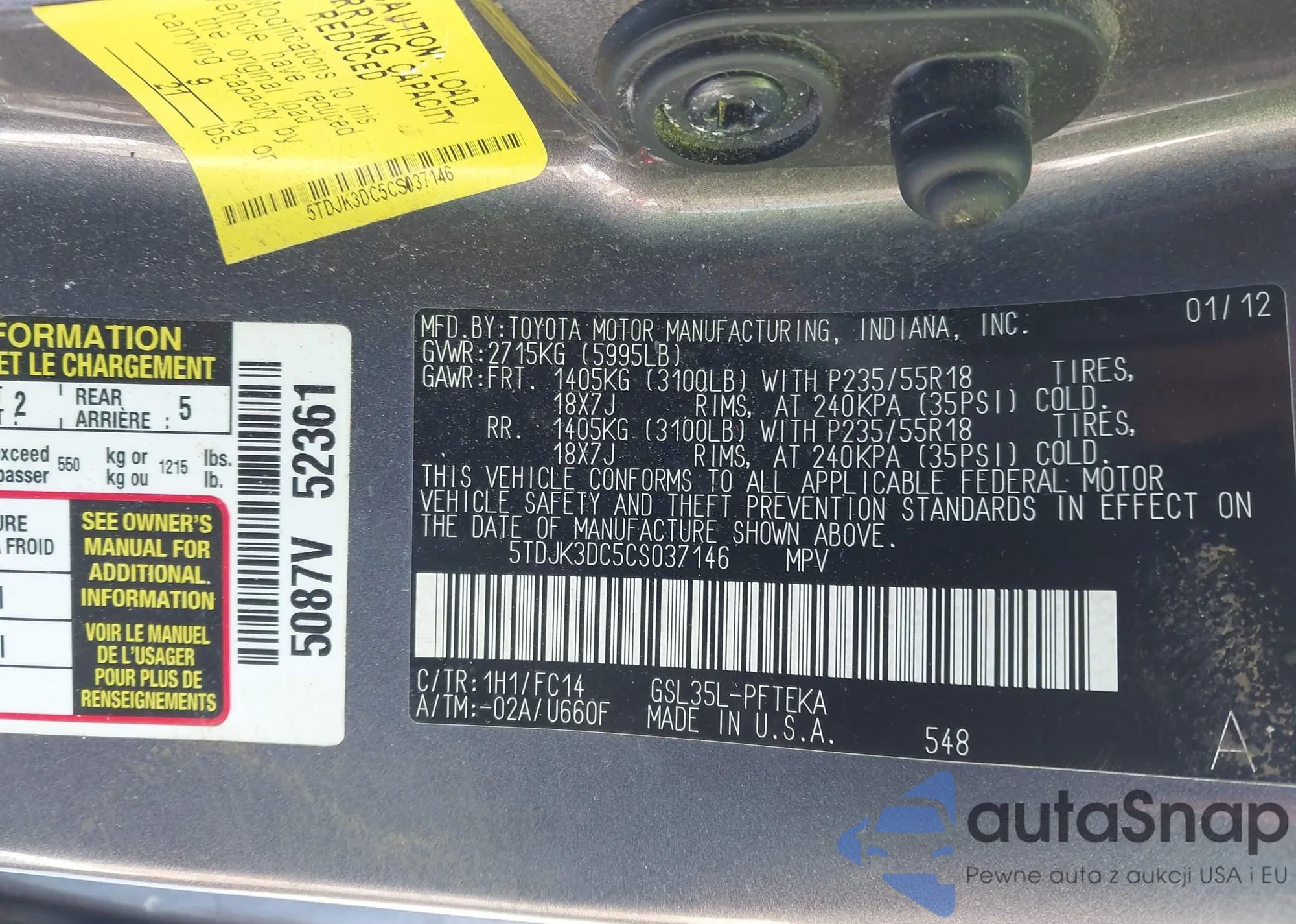 • VIN 5TDJK3DC5CS037146