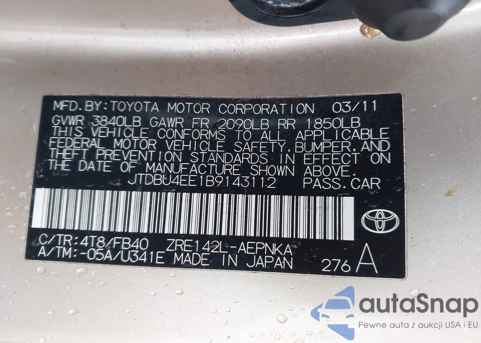 • VIN 4T1BF3EK8AU017248