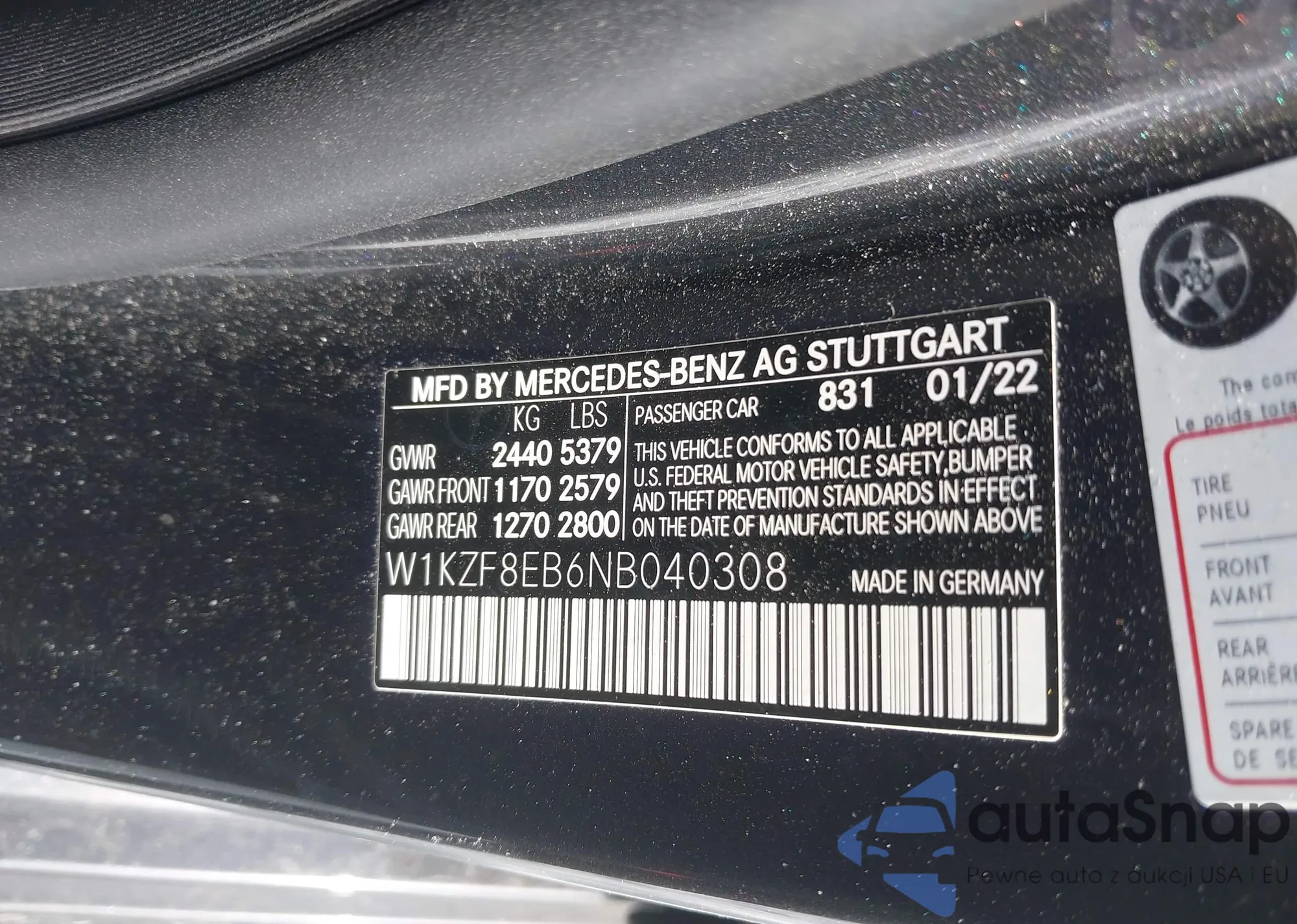 • VIN W1KZF8EB6NB040308