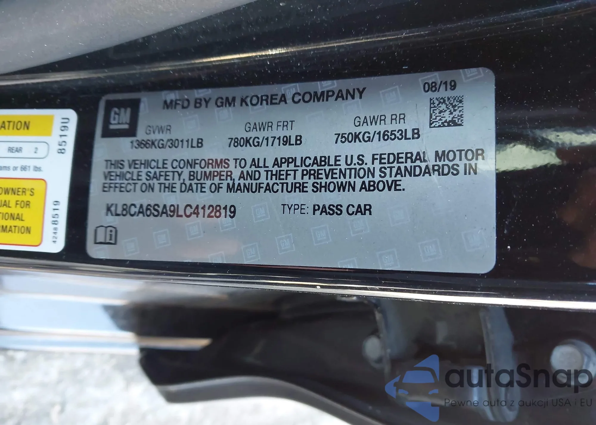 • VIN KL8CA6SA9LC412819