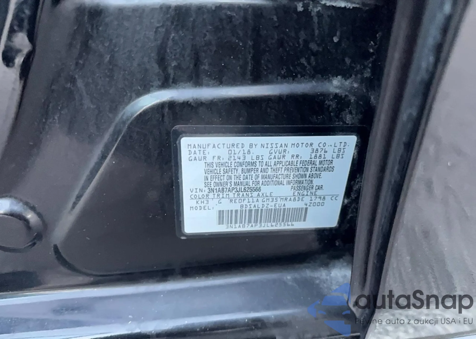 LOT: 79304655 VIN: 3N1AB7AP3JL625566