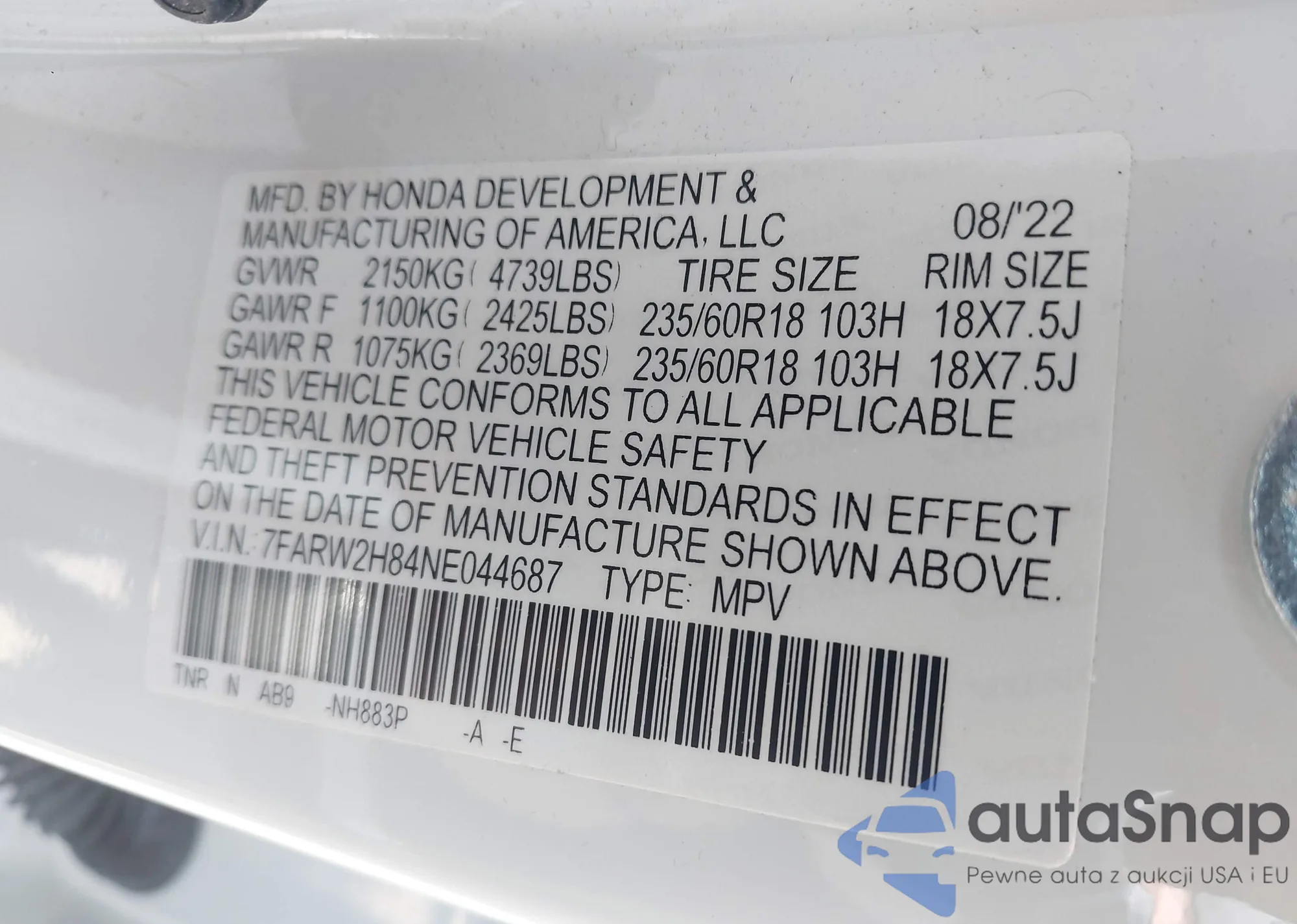 • VIN 7FARW2H84NE044687