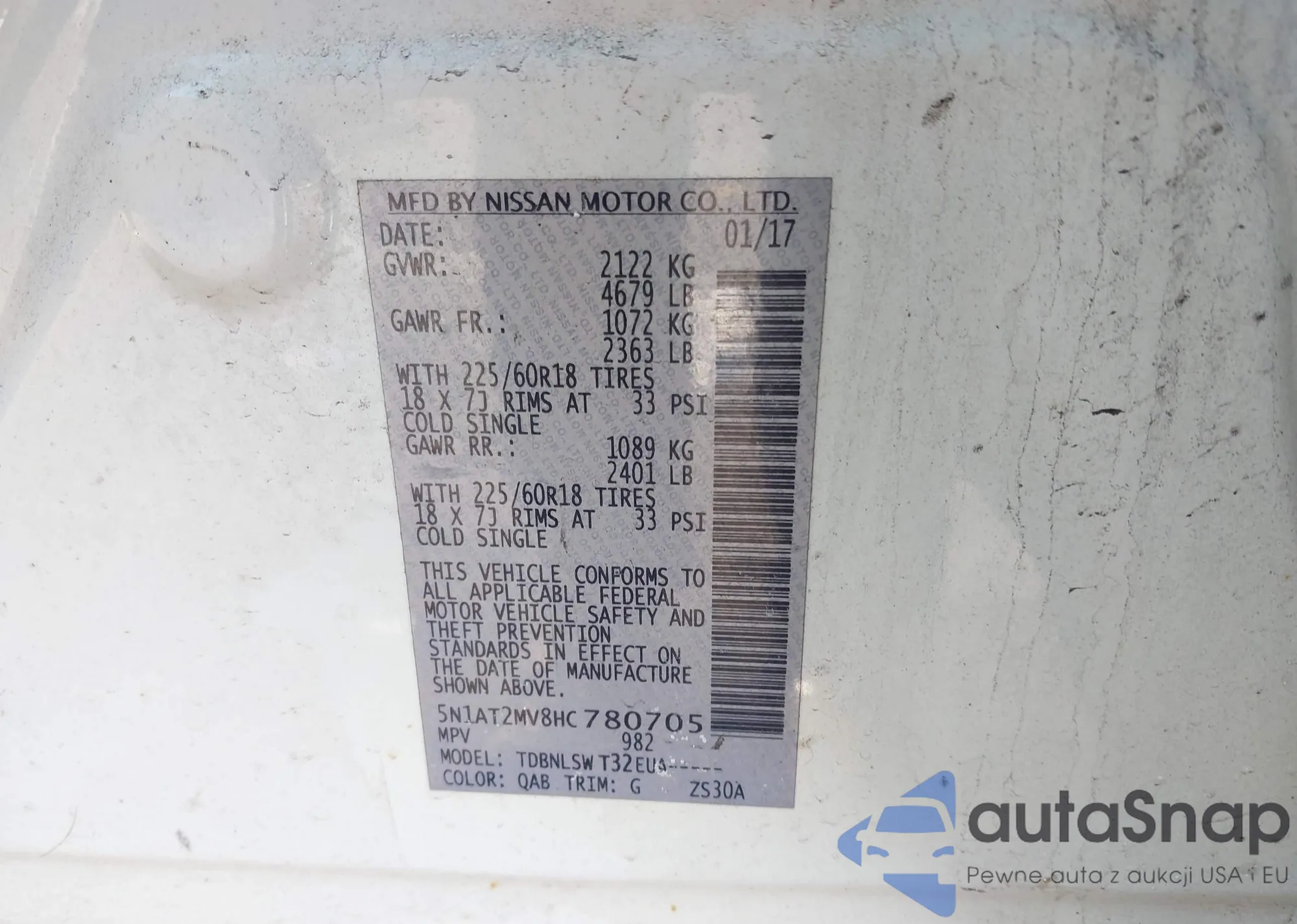 LOT: 44151752 VIN: 5N1AT2MV8HC780705