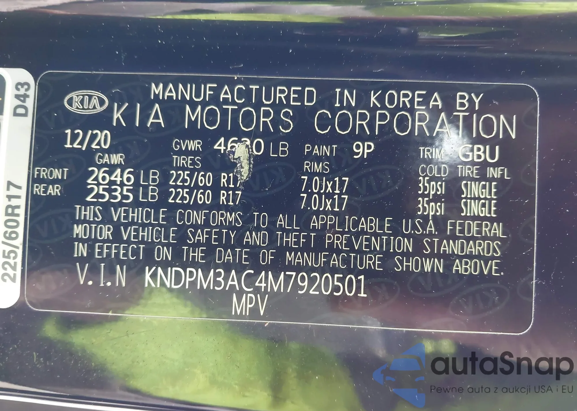 • VIN KNAG64J72S5298165