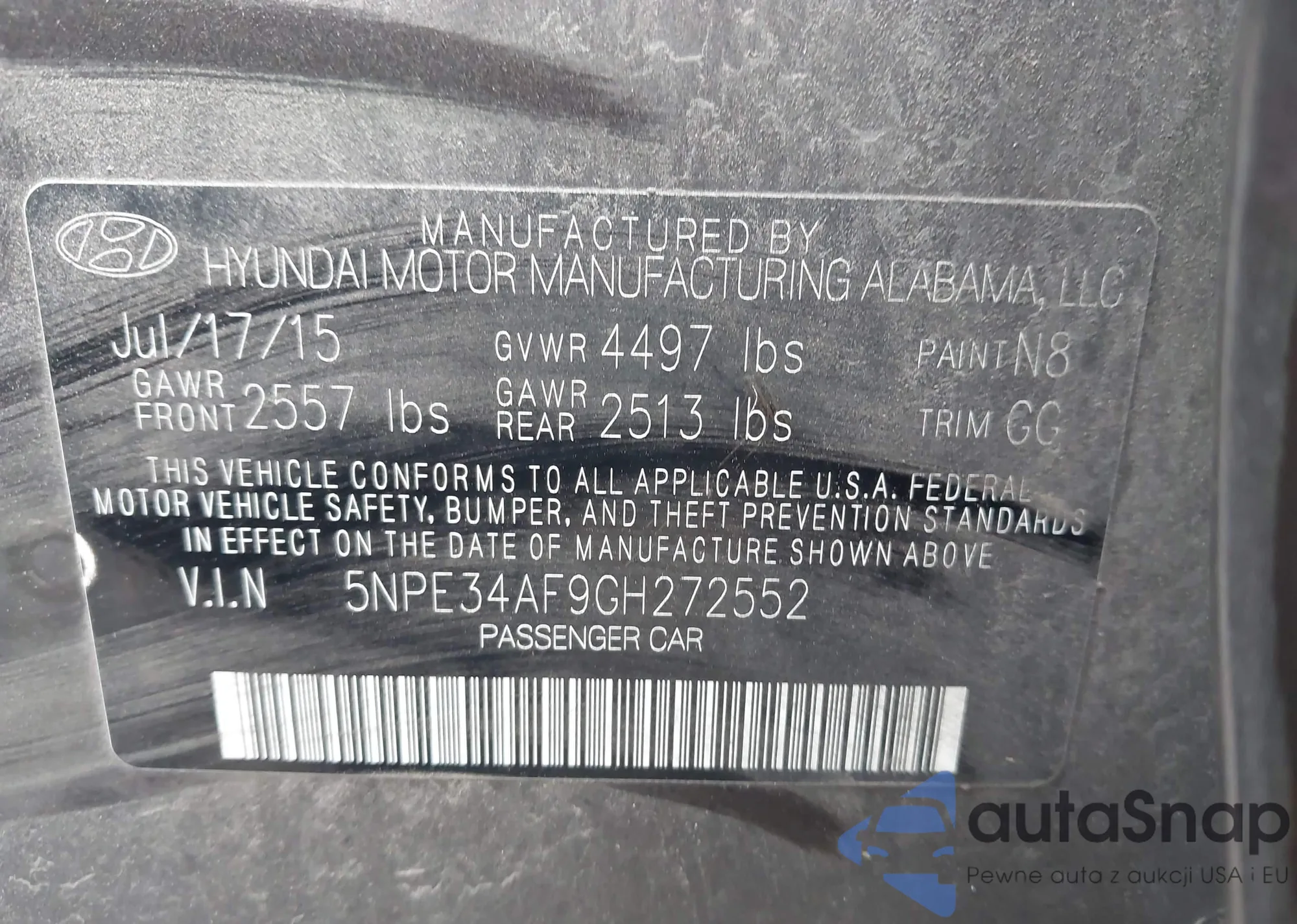 • VIN 5NPE34AF9GH272552