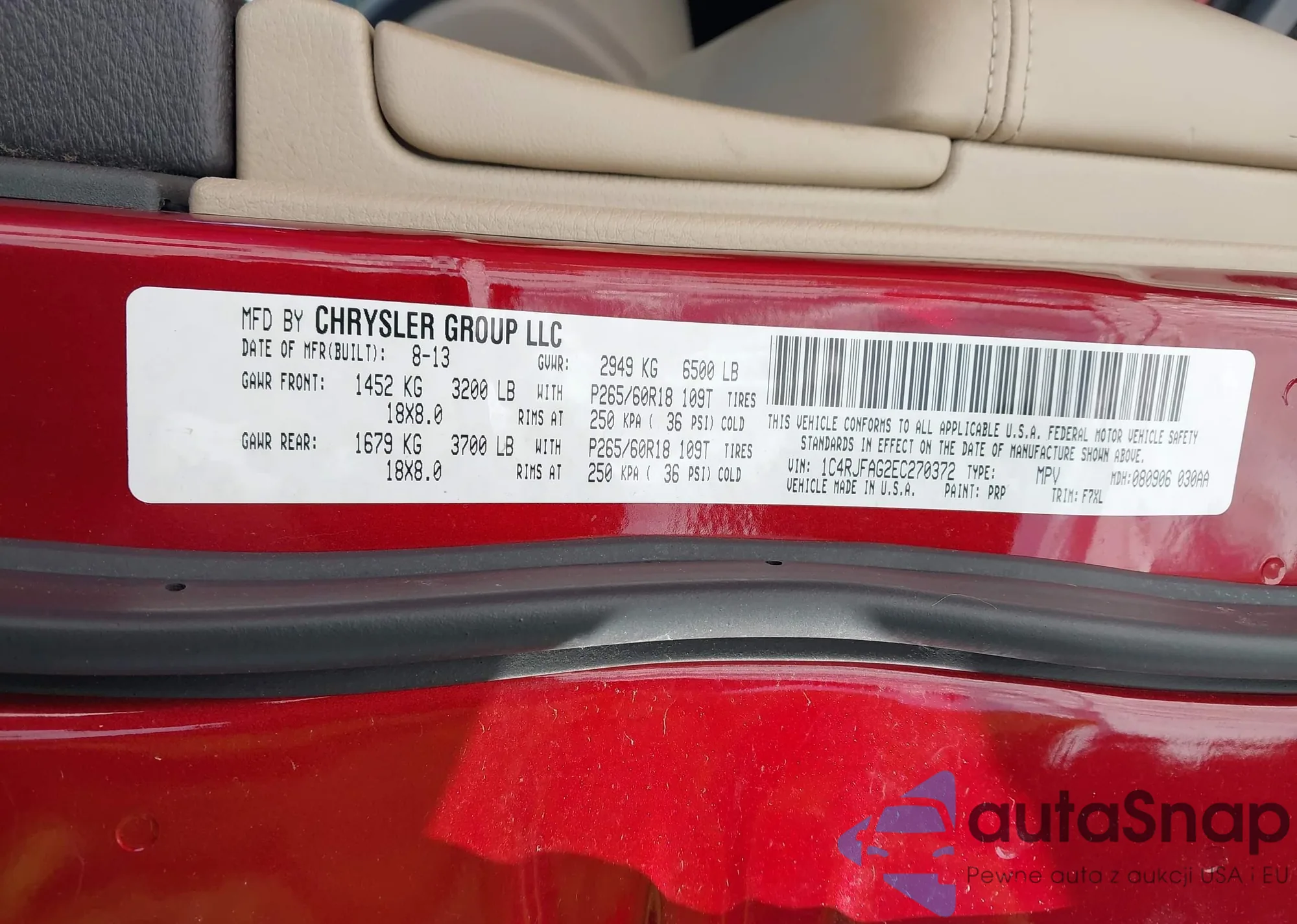 • VIN 1C4RJFAG2EC270372